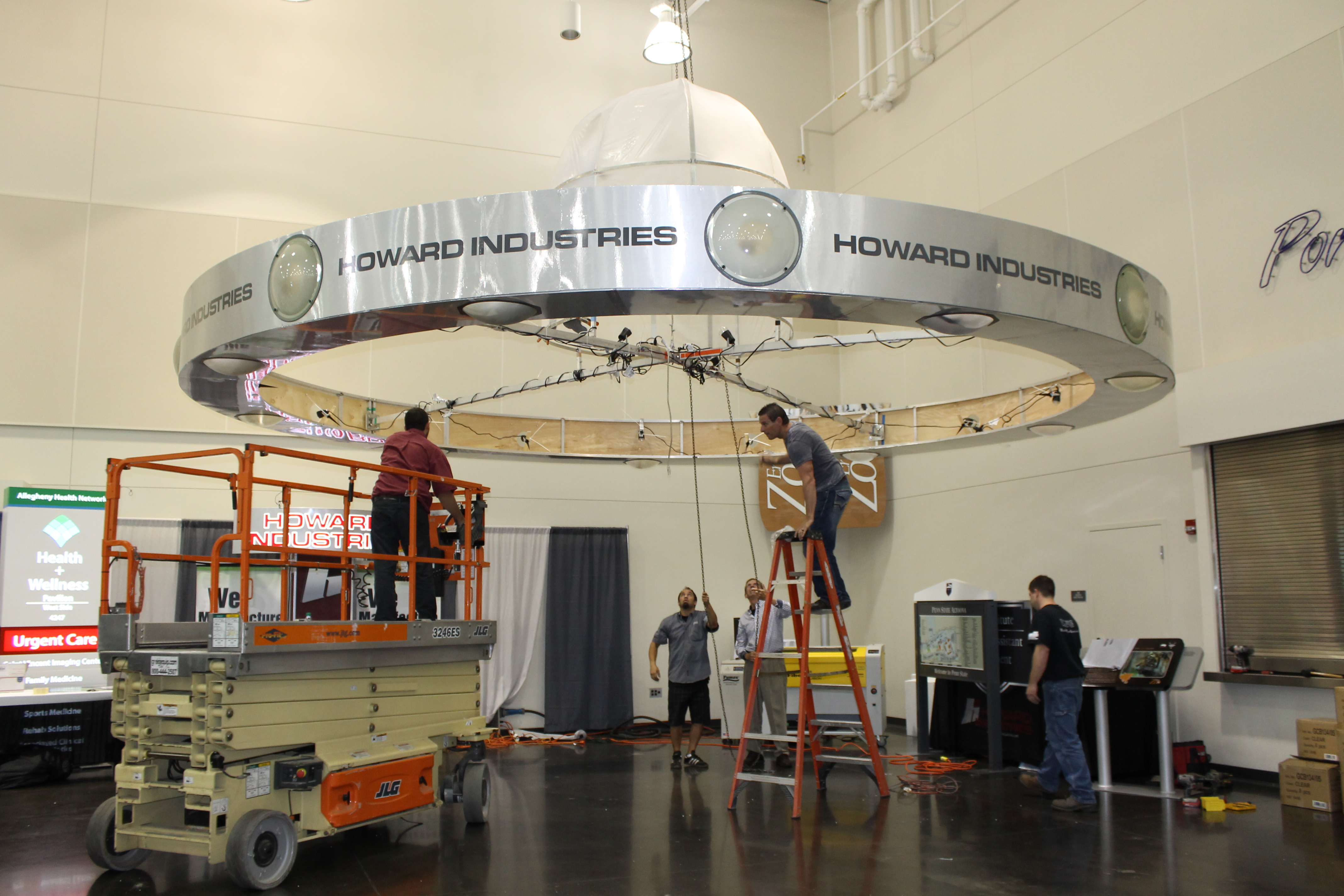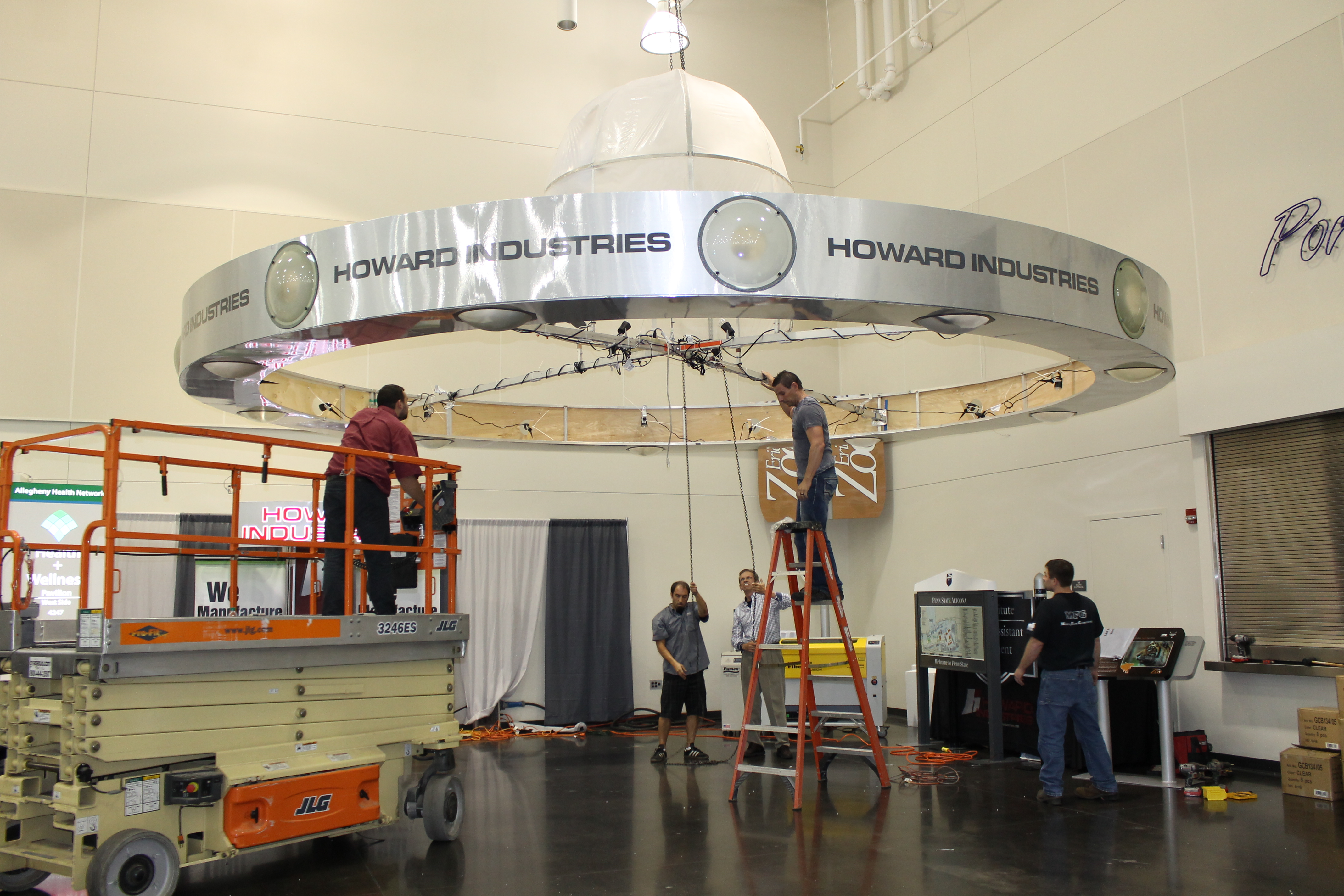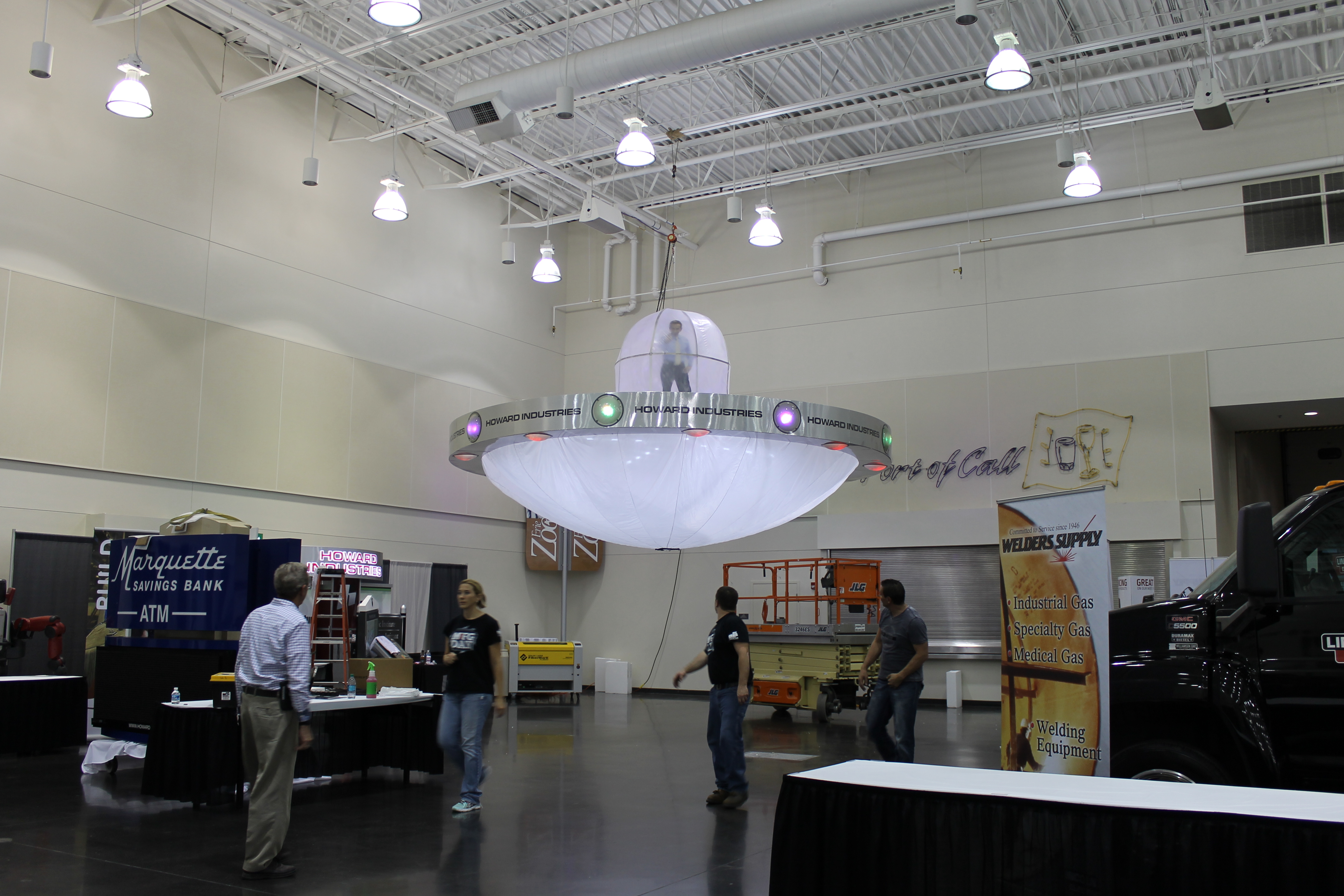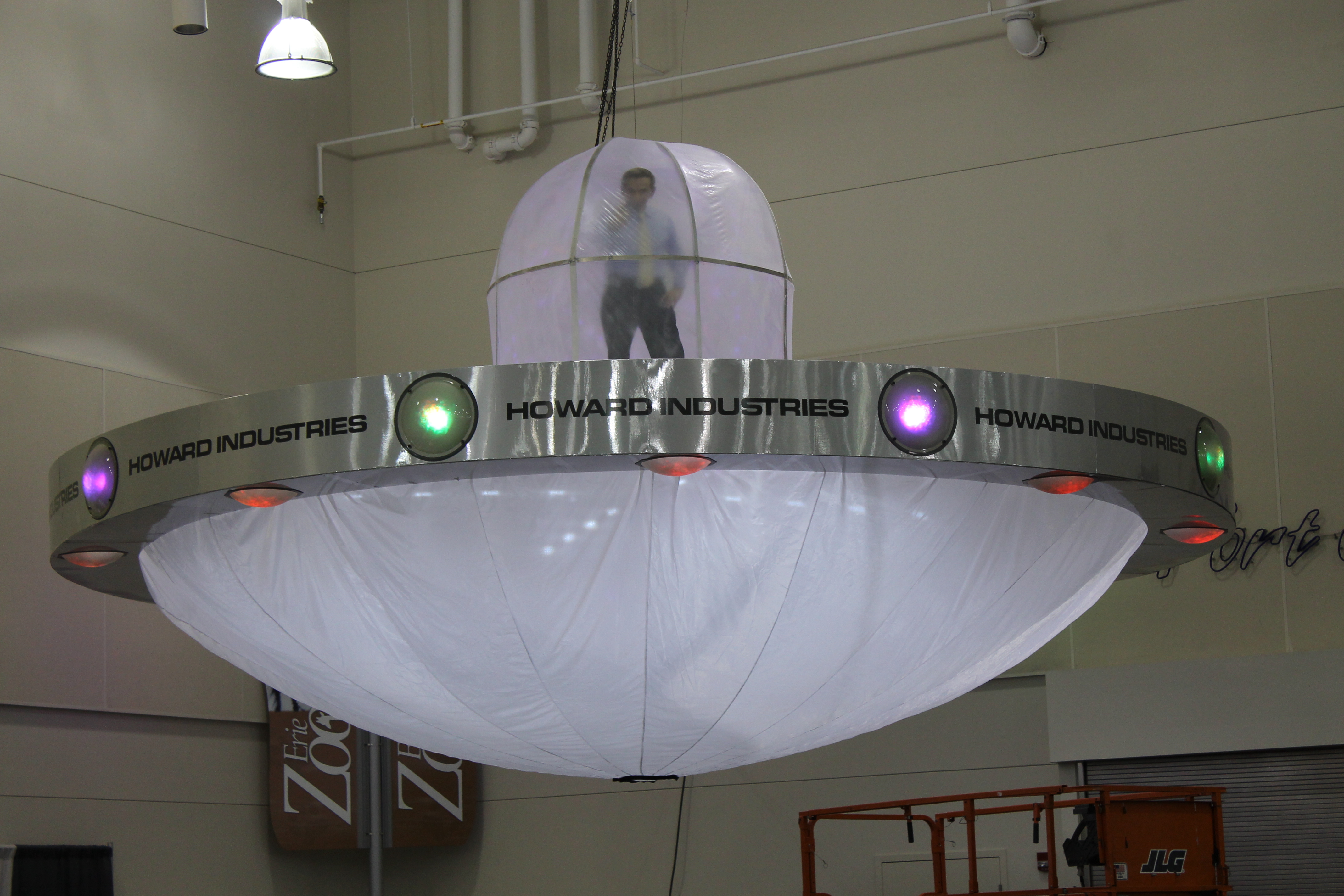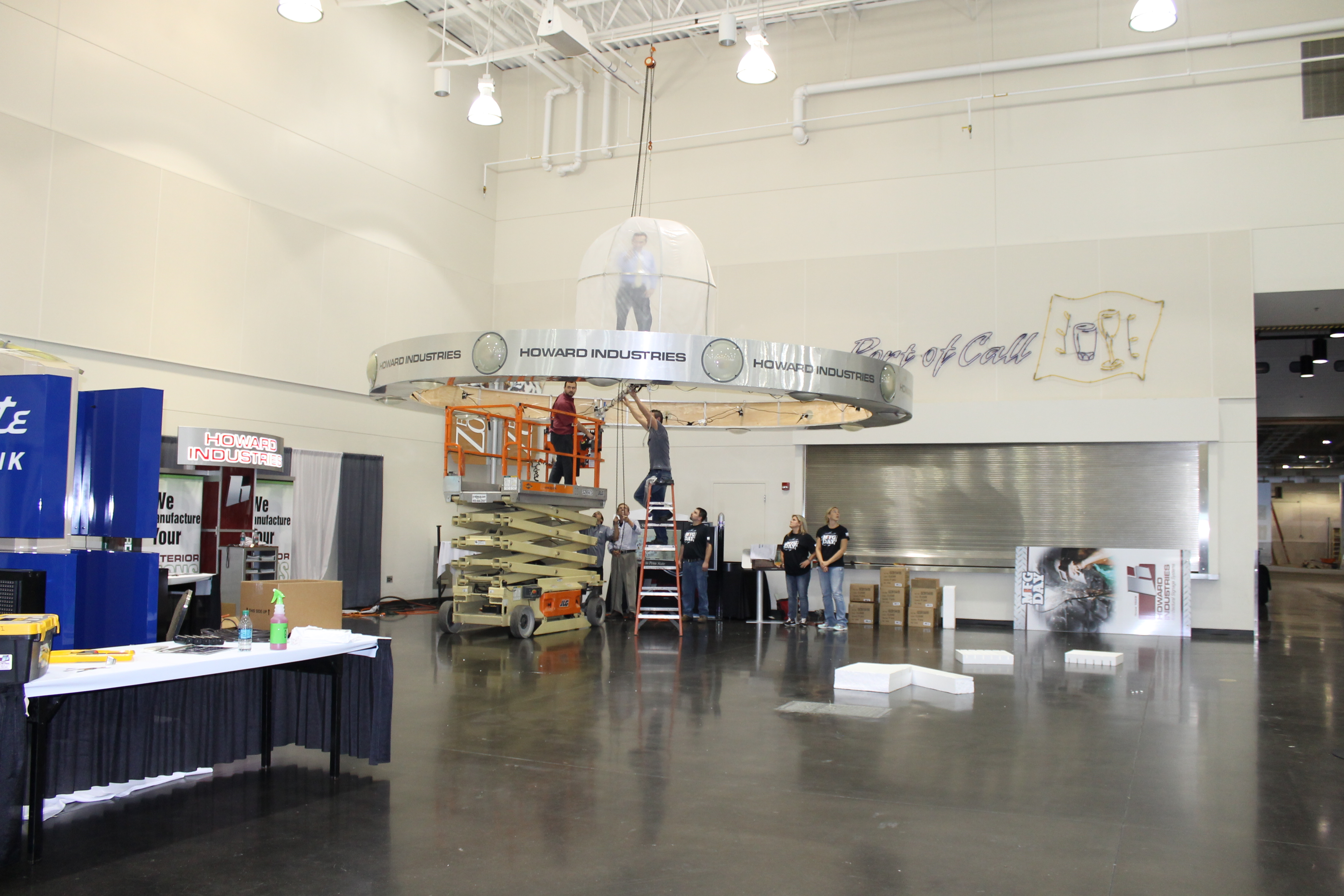 In preparation for the October 5th Manufacturing Day Celebration, Howard Industries conceived an exhibiting theme that involved a 22 foot diameter UFO. Our intention was to peak and engage the interest of attending students with the conceptual idea – “How Far Will Manufacturing Take You?” and then apply this concept to the many career opportunities the signage manufacturing industry has to offer. Follow along with the photos below to see how this spectacle was manufactured by our team!