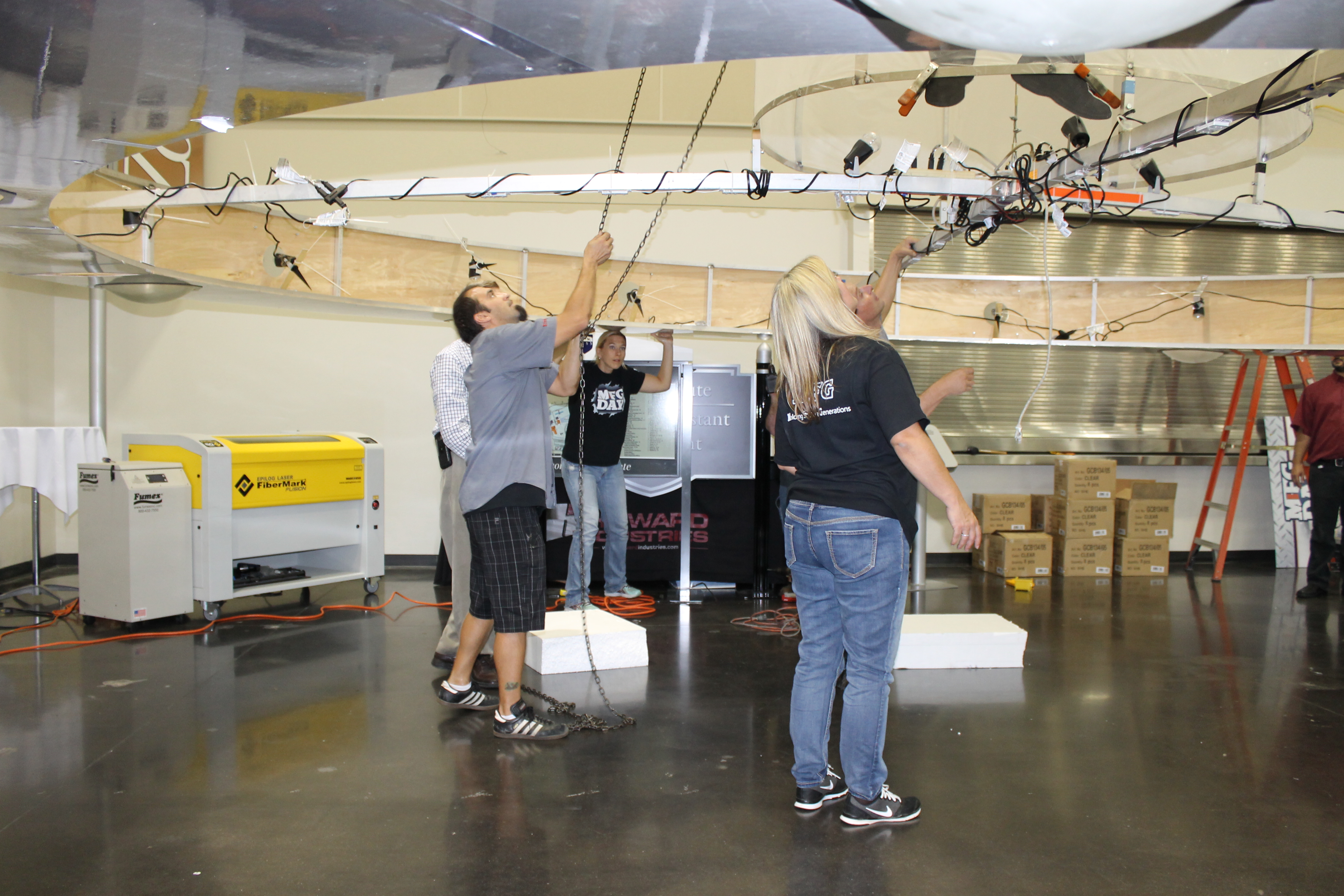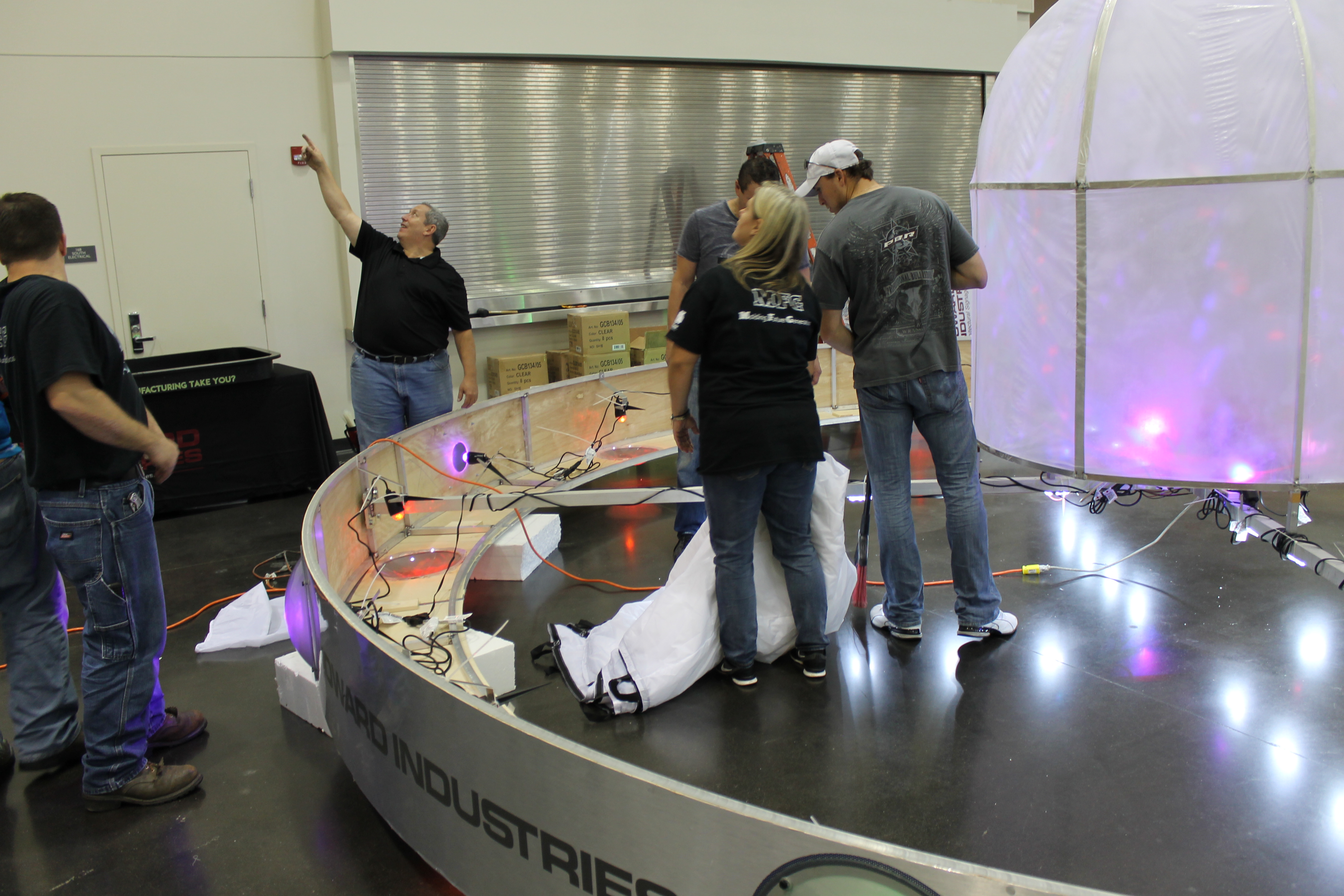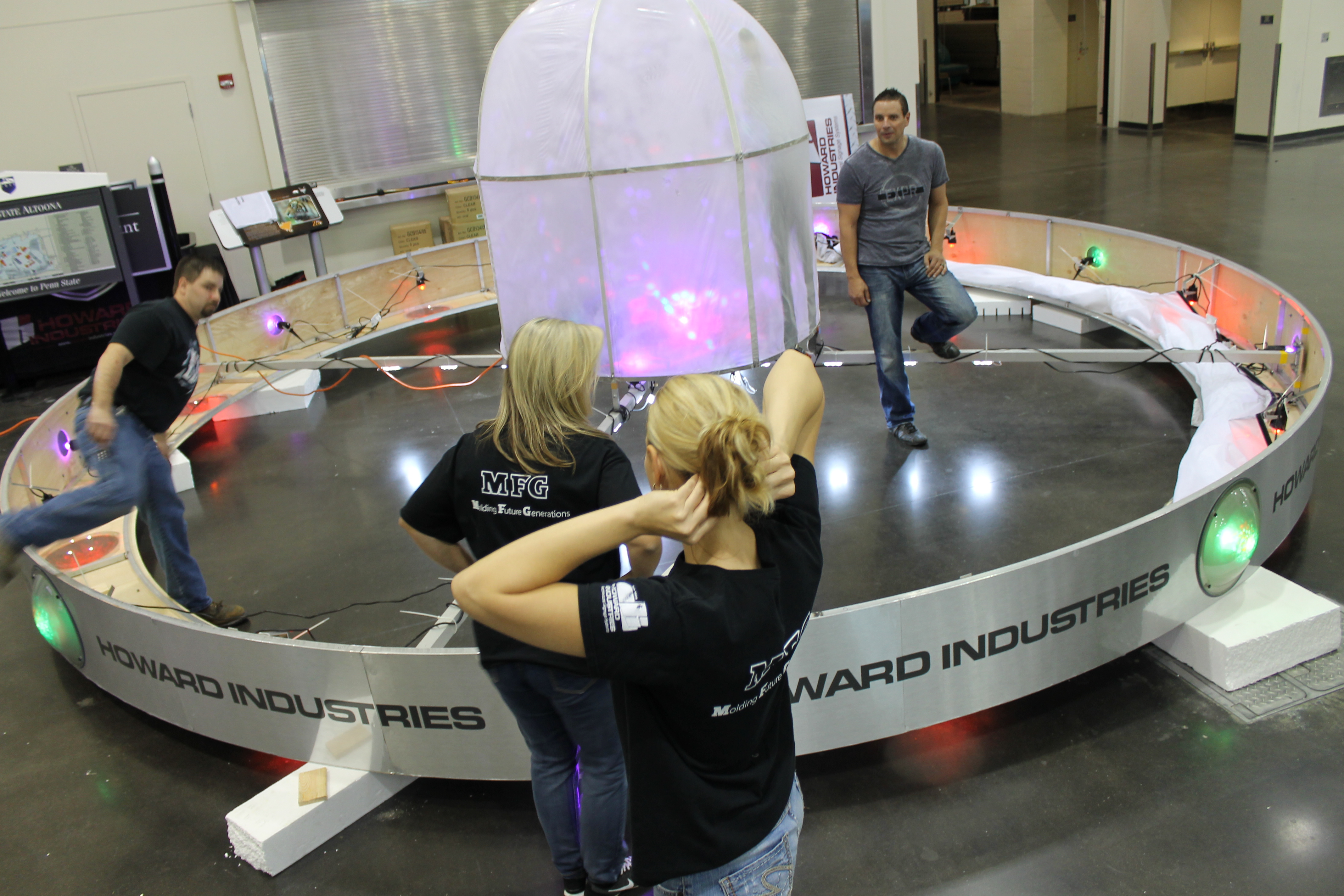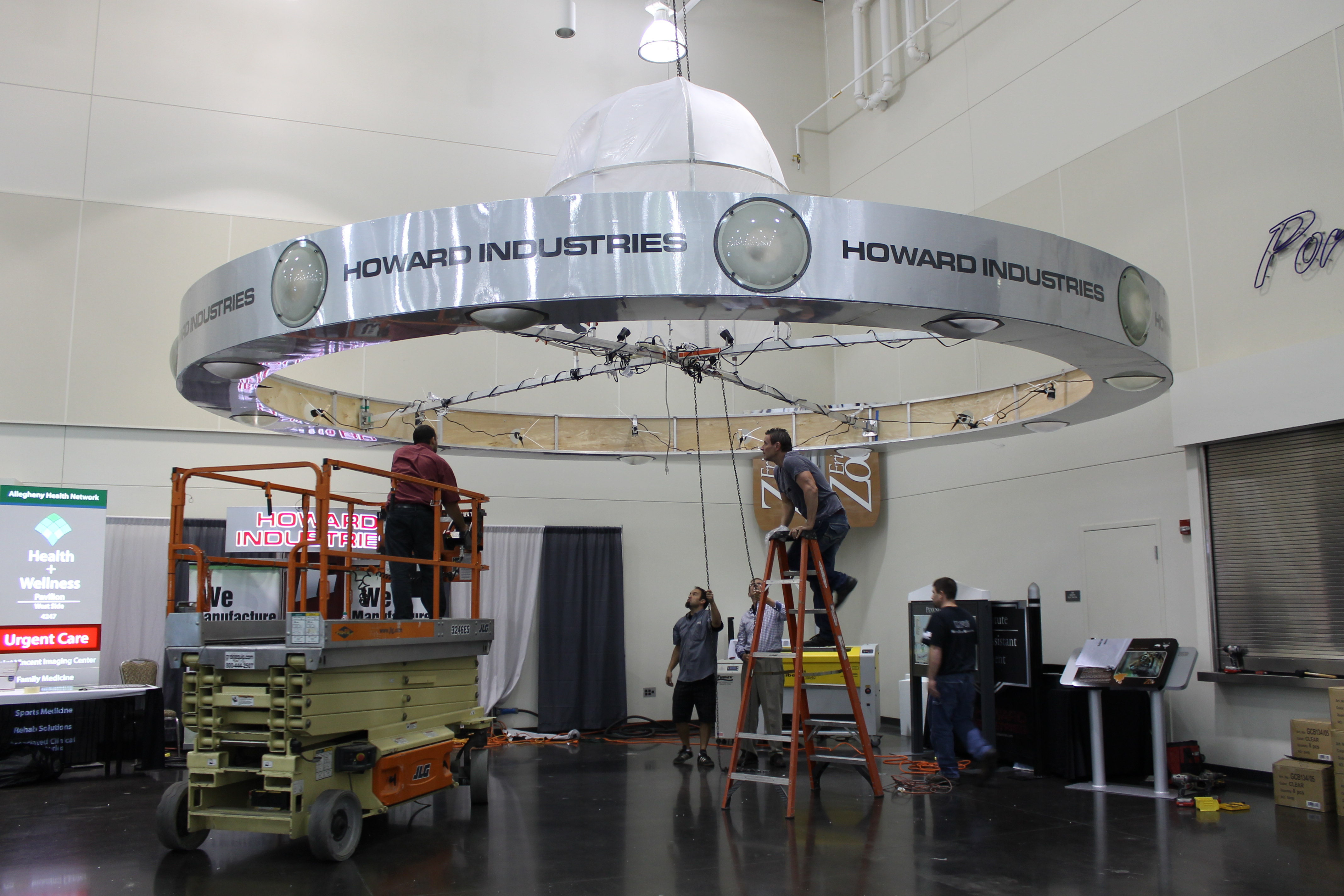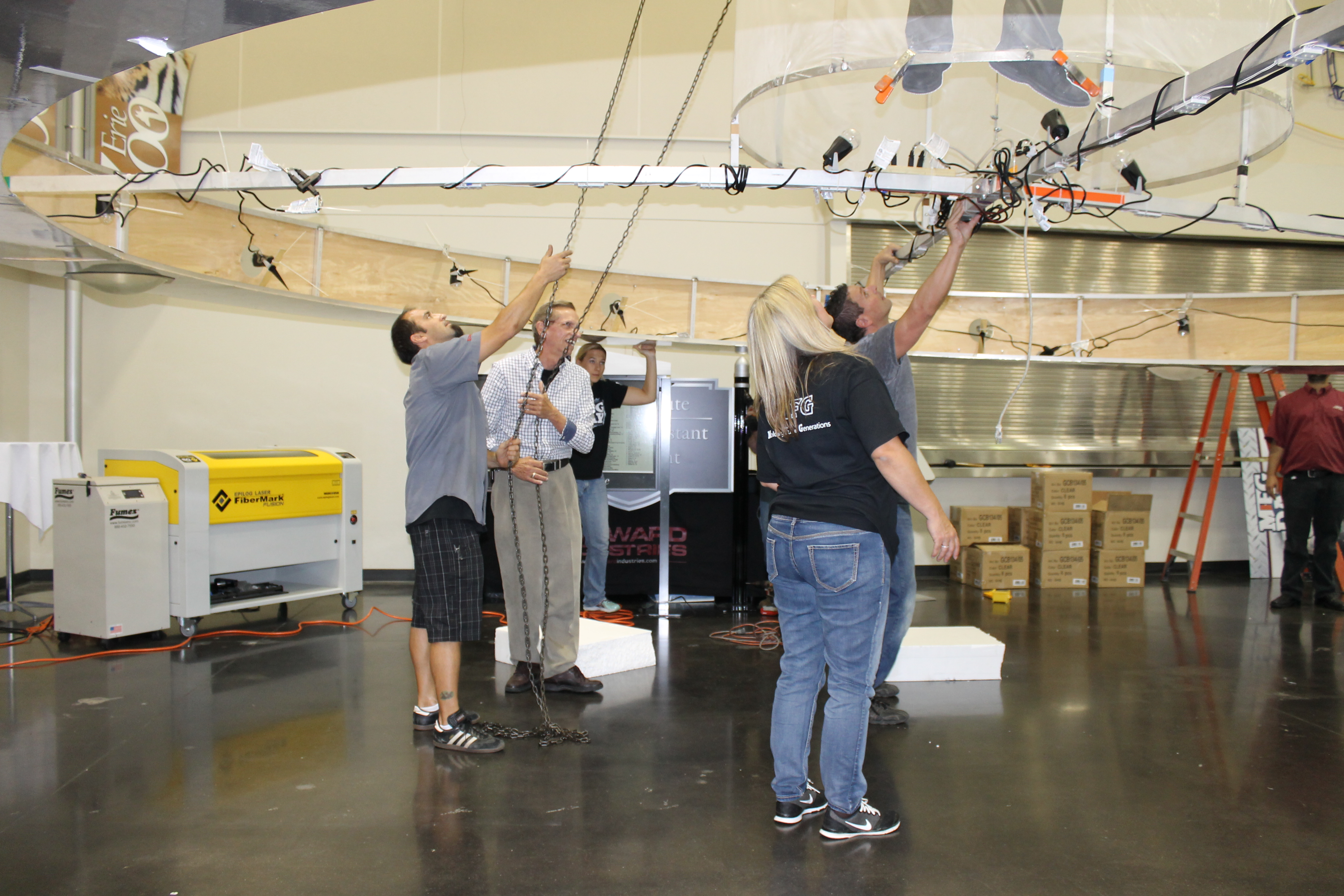 In preparation for the October 5th Manufacturing Day Celebration, Howard Industries conceived an exhibiting theme that involved a 22 foot diameter UFO. Our intention was to peak and engage the interest of attending students with the conceptual idea – “How Far Will Manufacturing Take You?” and then apply this concept to the many career opportunities the signage manufacturing industry has to offer. Follow along with the photos below to see how this spectacle was manufactured by our team!