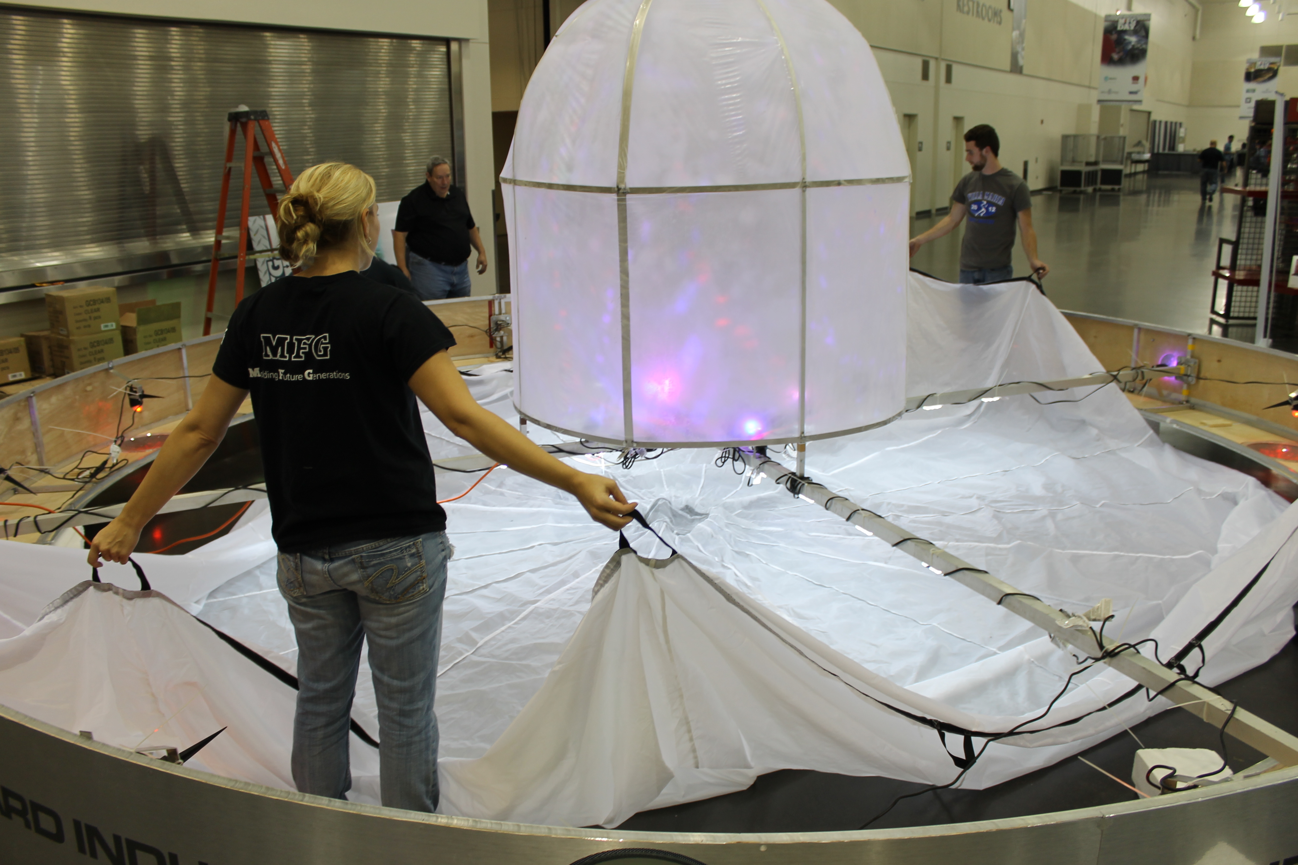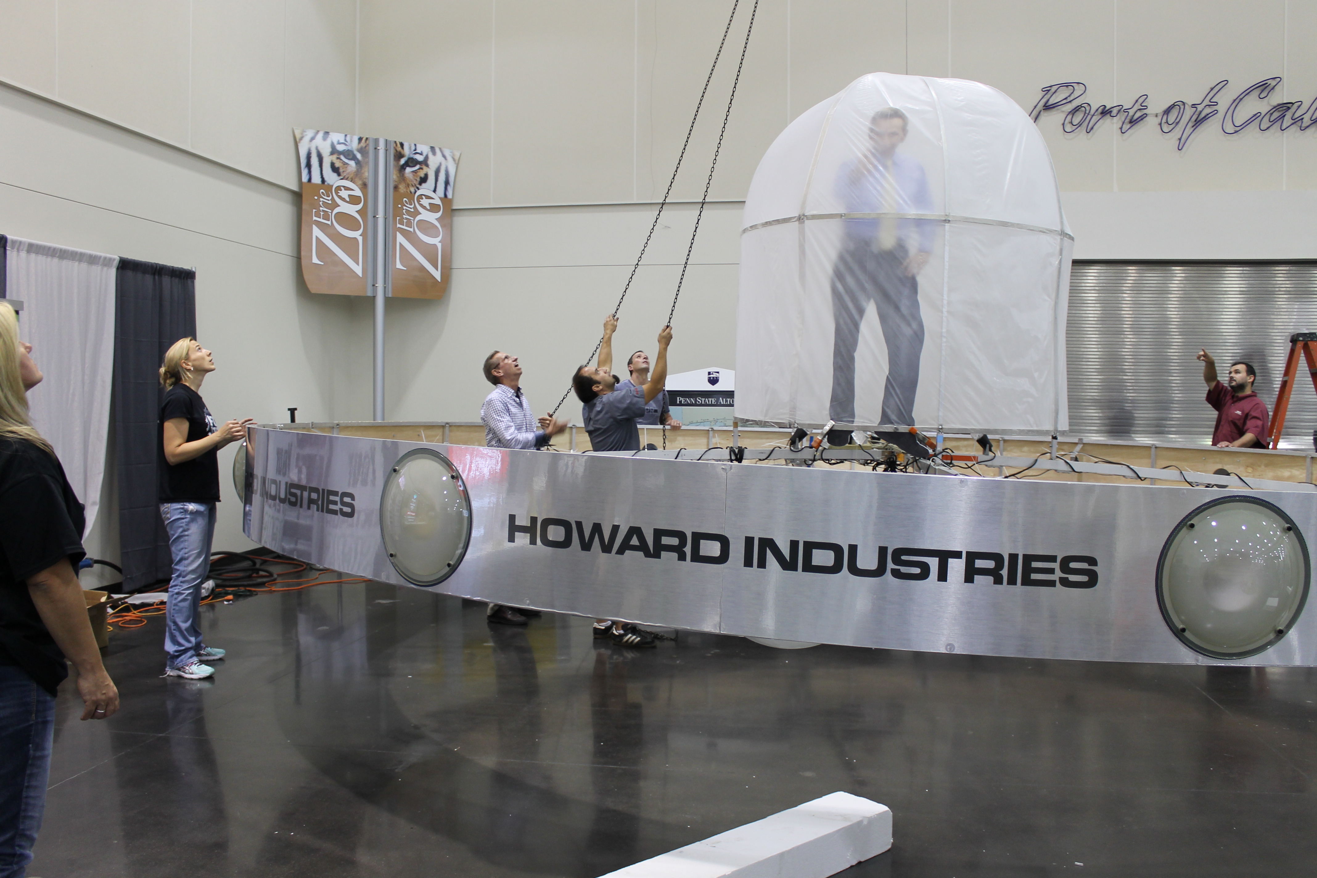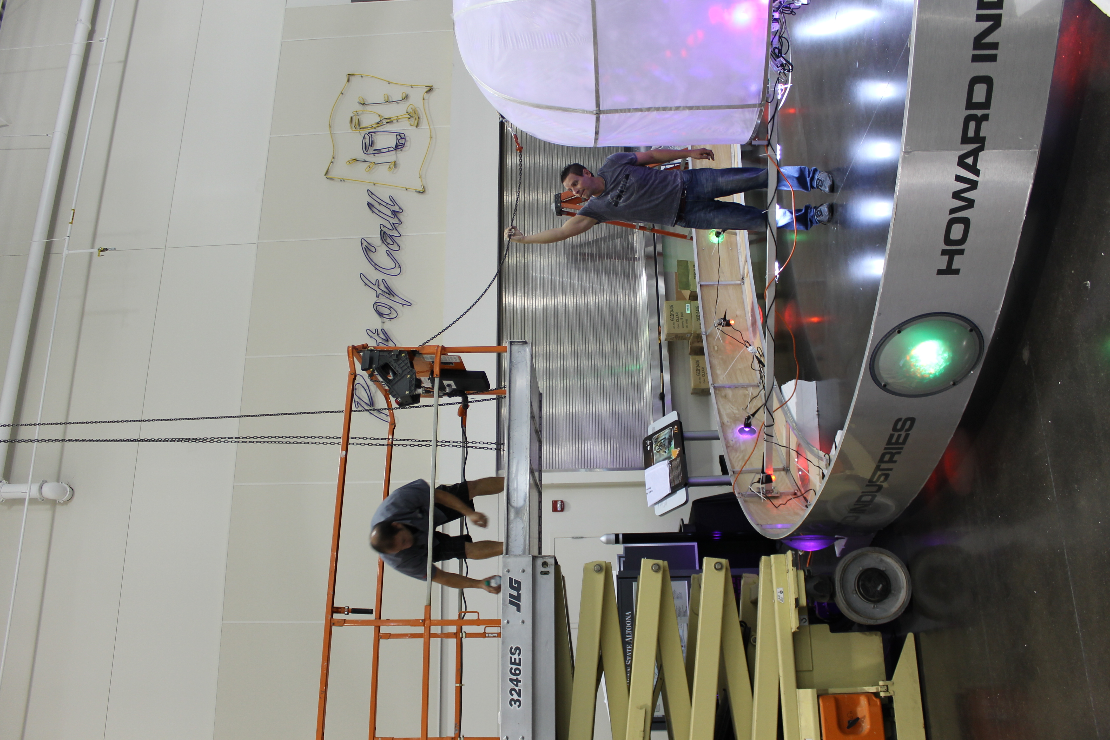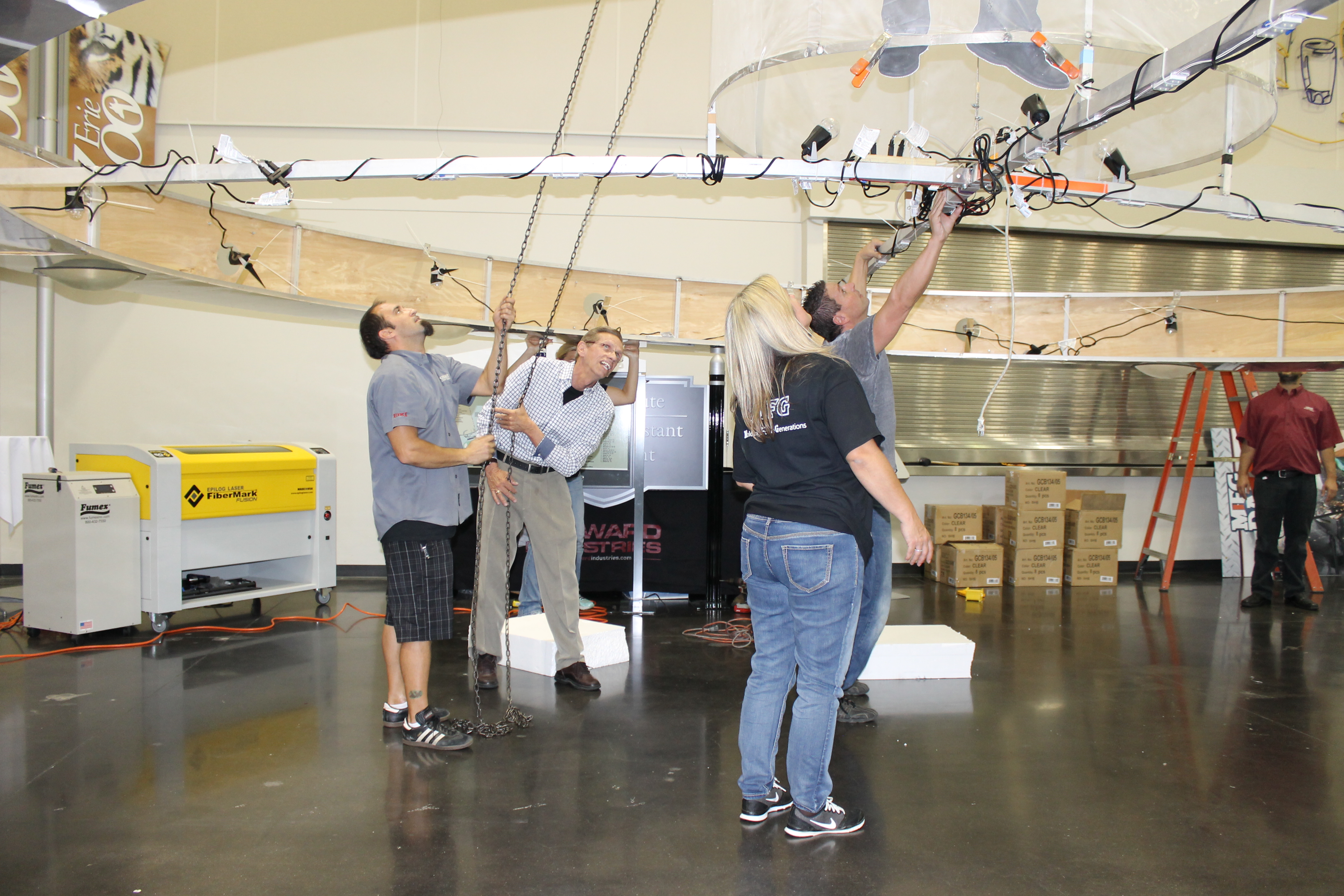 In preparation for the October 5th Manufacturing Day Celebration, Howard Industries conceived an exhibiting theme that involved a 22 foot diameter UFO. Our intention was to peak and engage the interest of attending students with the conceptual idea – “How Far Will Manufacturing Take You?” and then apply this concept to the many career opportunities the signage manufacturing industry has to offer. Follow along with the photos below to see how this spectacle was manufactured by our team!