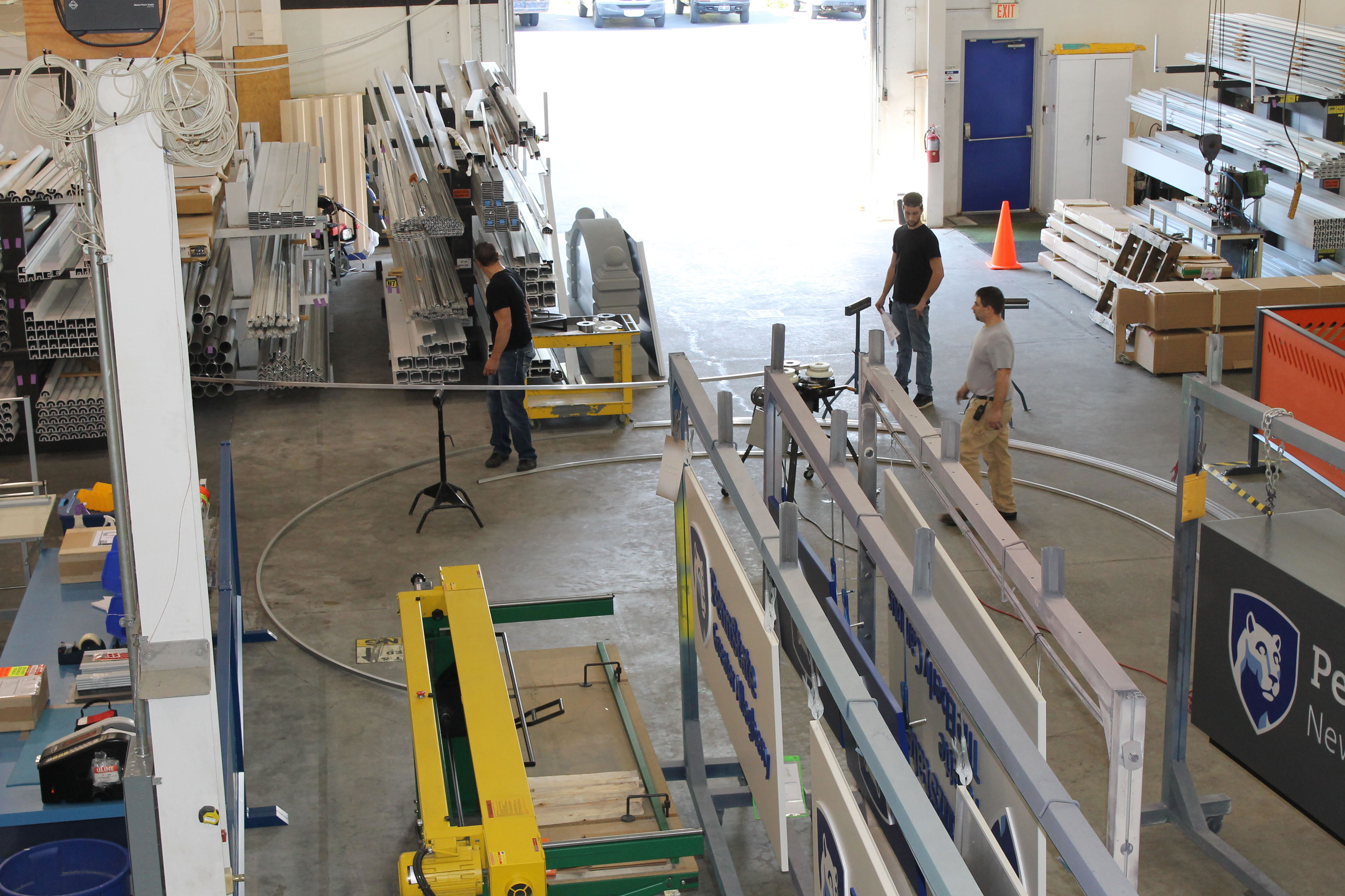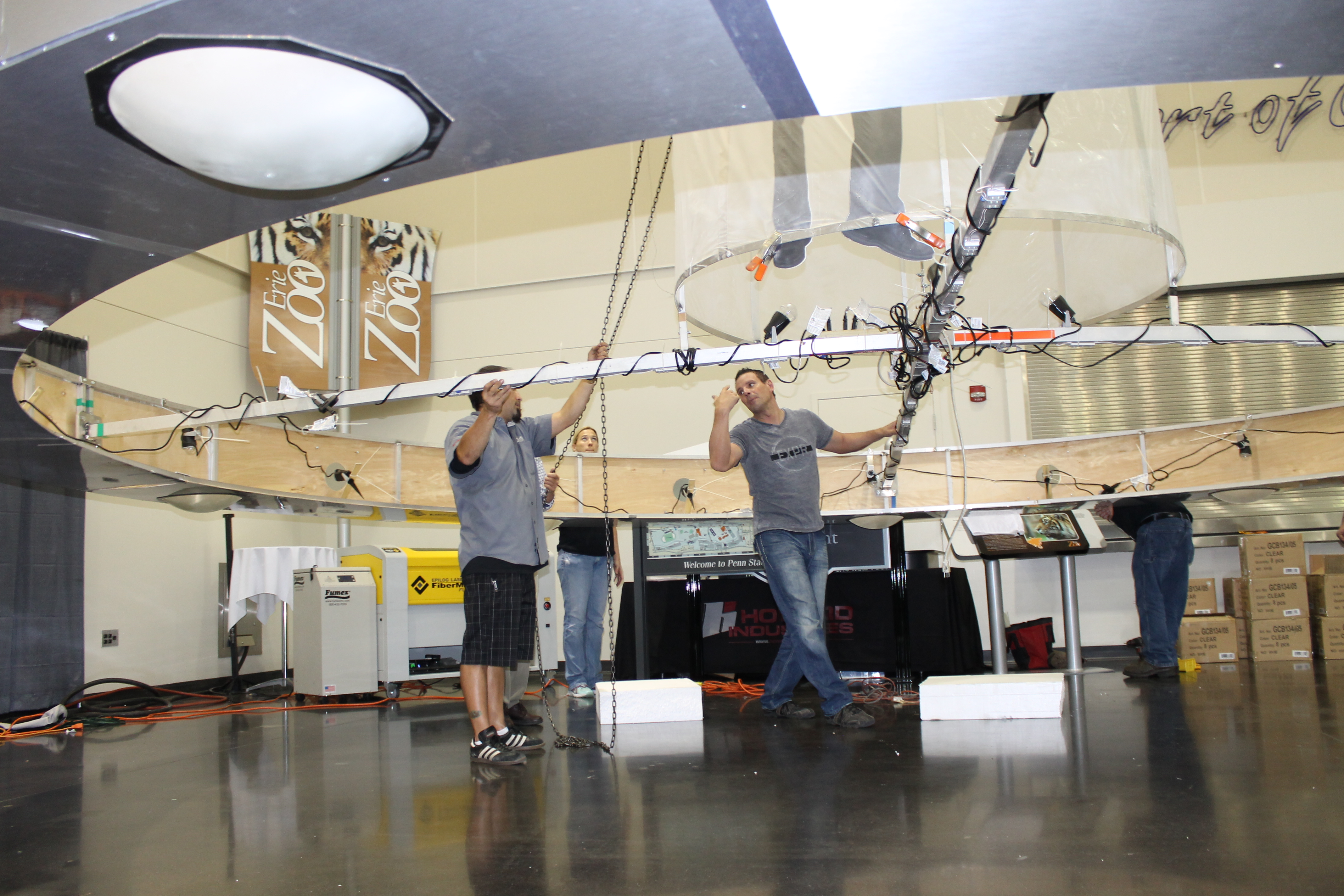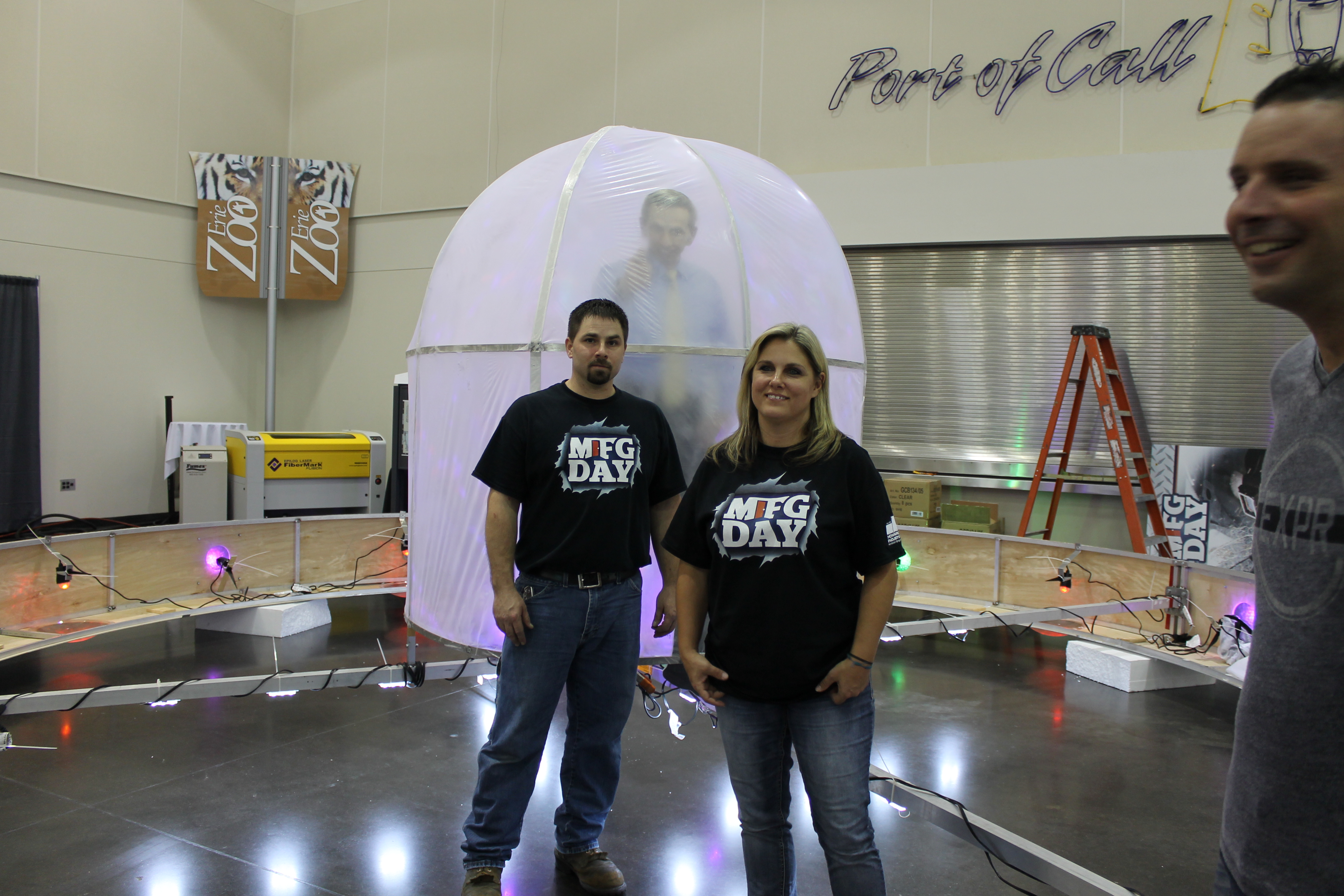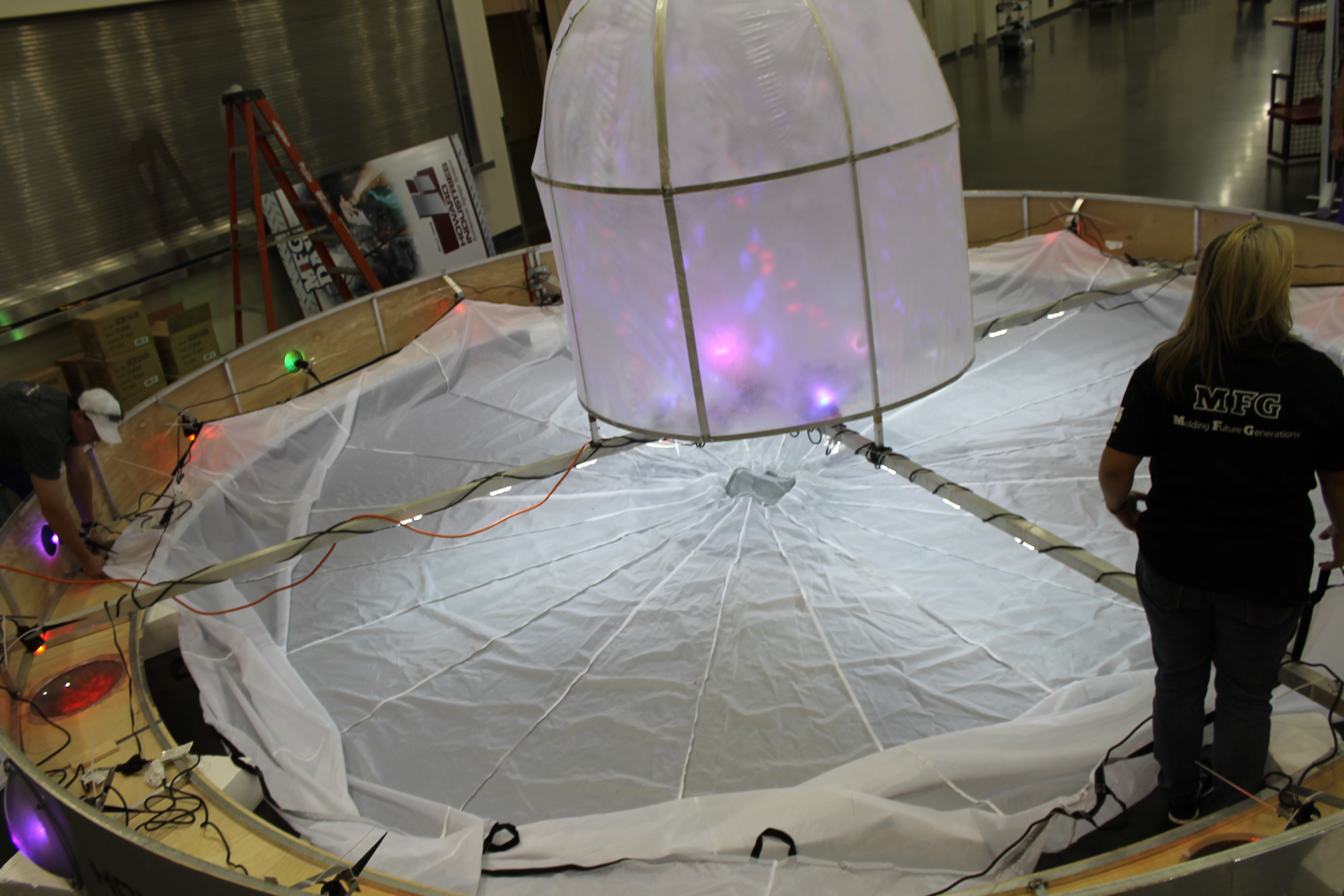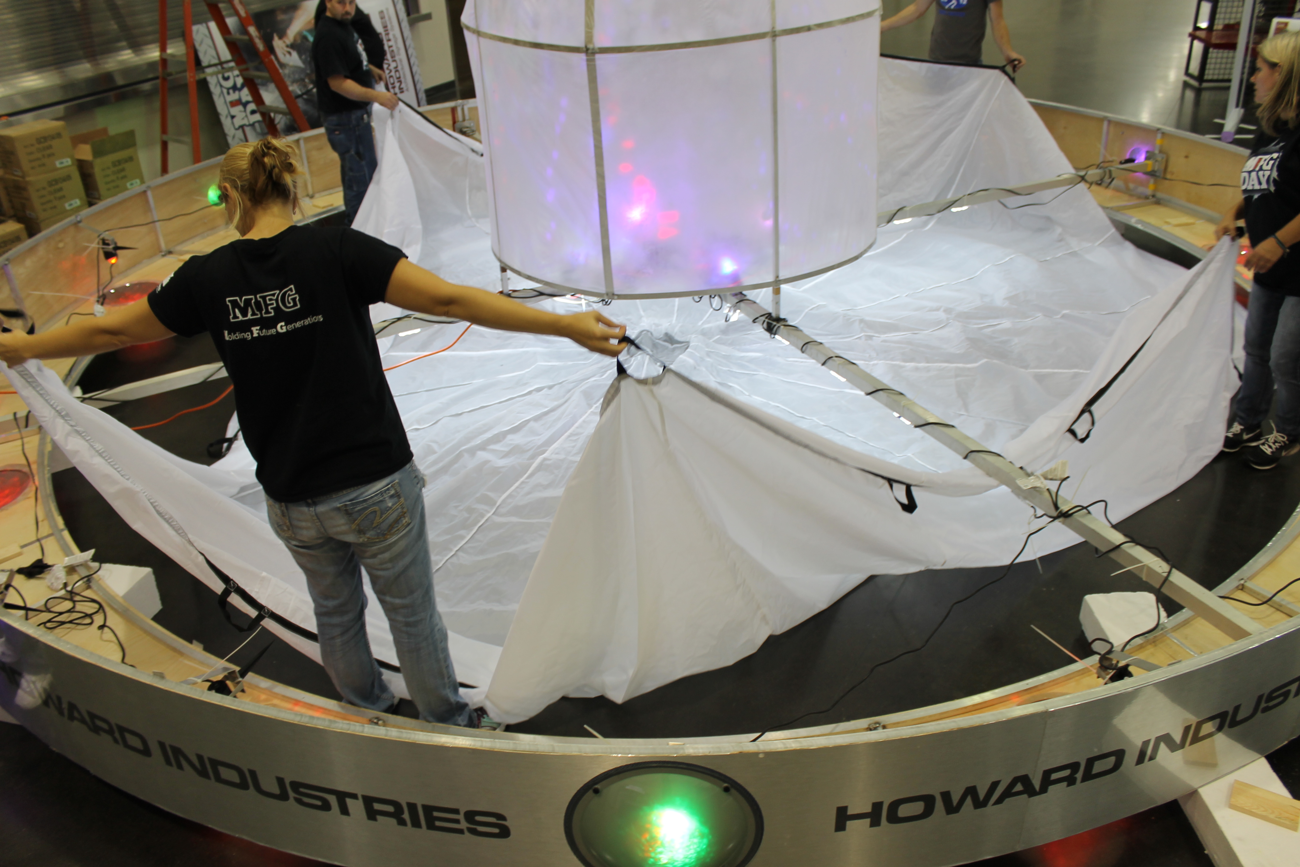 In preparation for the October 5th Manufacturing Day Celebration, Howard Industries conceived an exhibiting theme that involved a 22 foot diameter UFO. Our intention was to peak and engage the interest of attending students with the conceptual idea – “How Far Will Manufacturing Take You?” and then apply this concept to the many career opportunities the signage manufacturing industry has to offer. Follow along with the photos below to see how this spectacle was manufactured by our team!