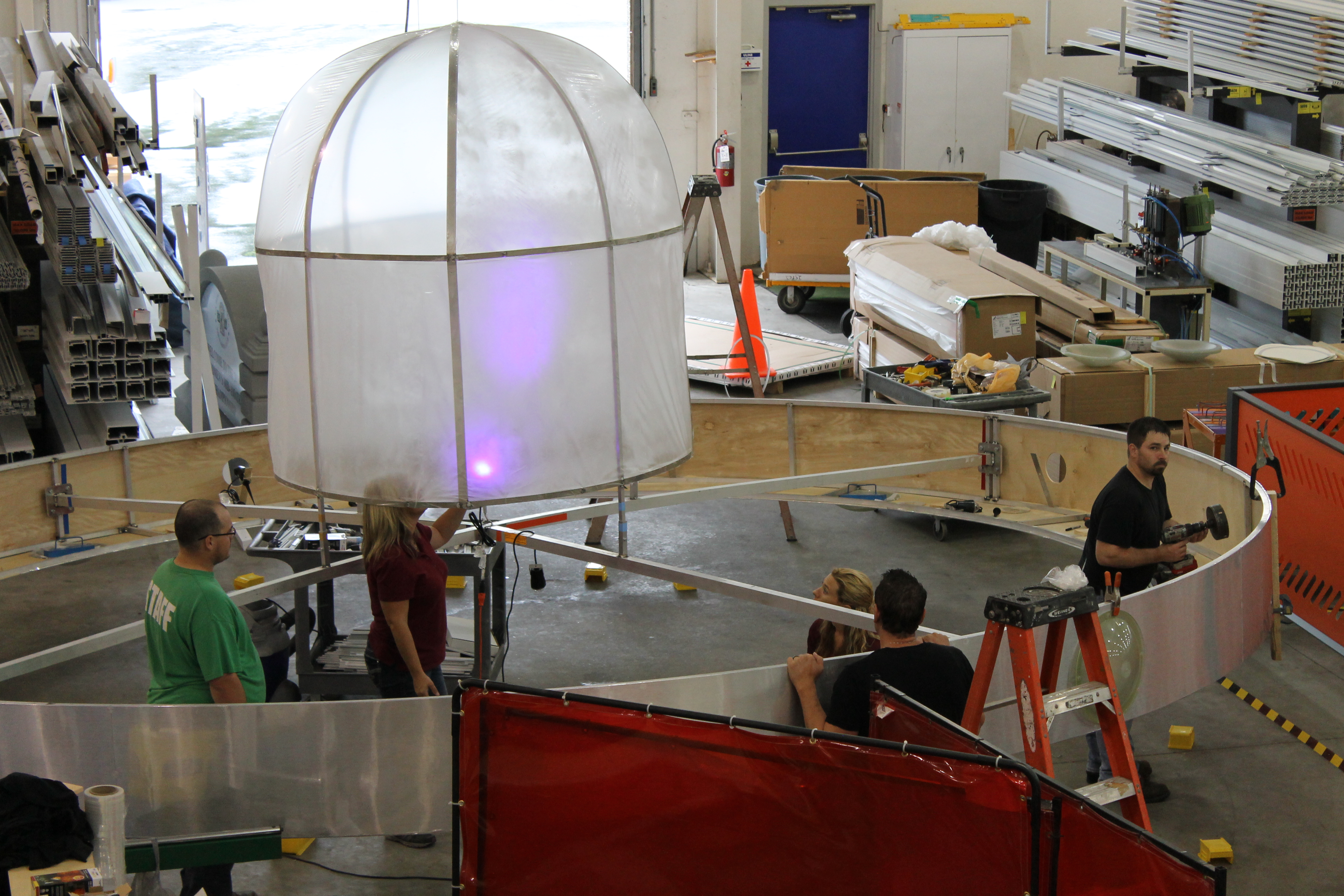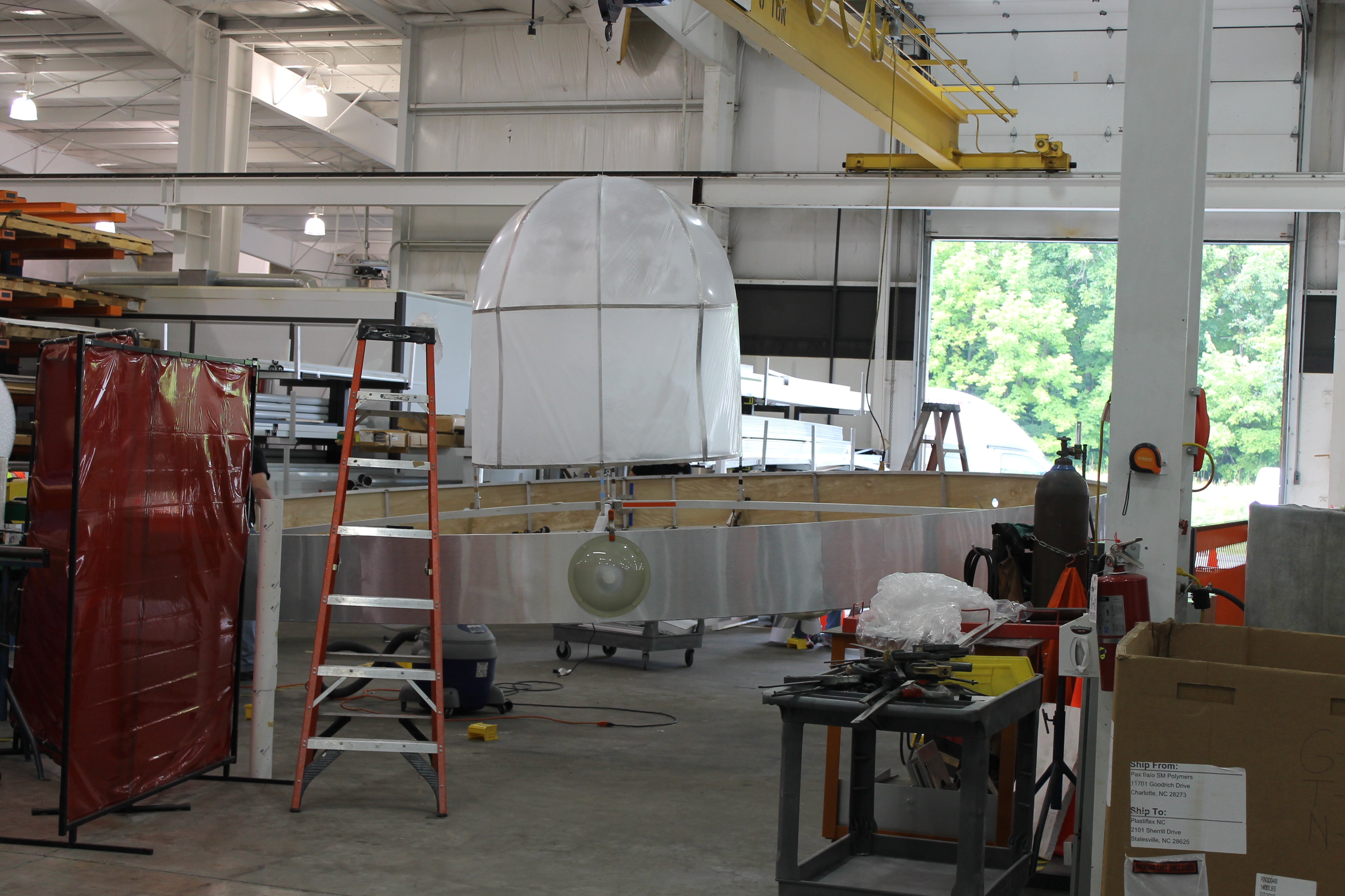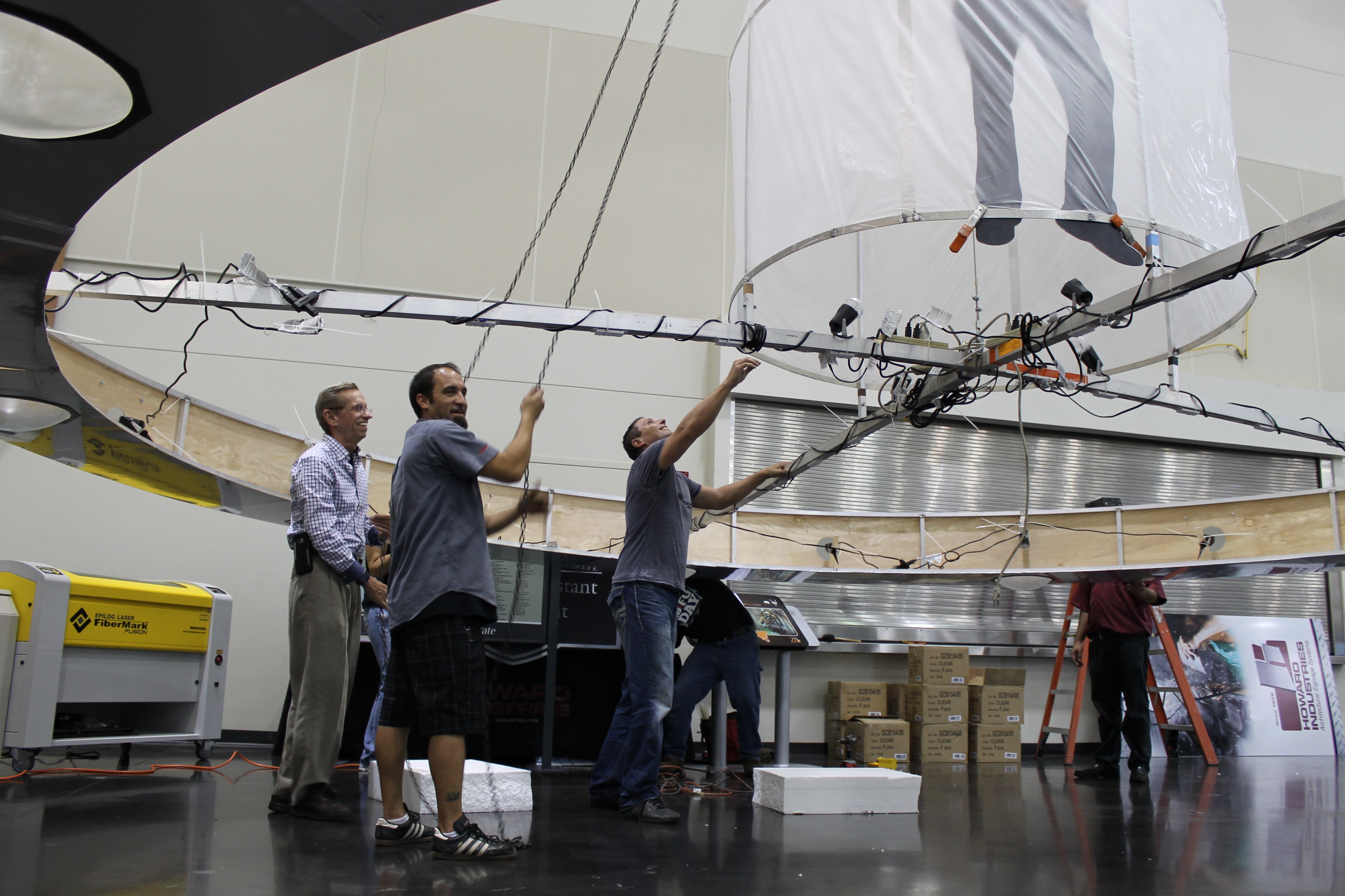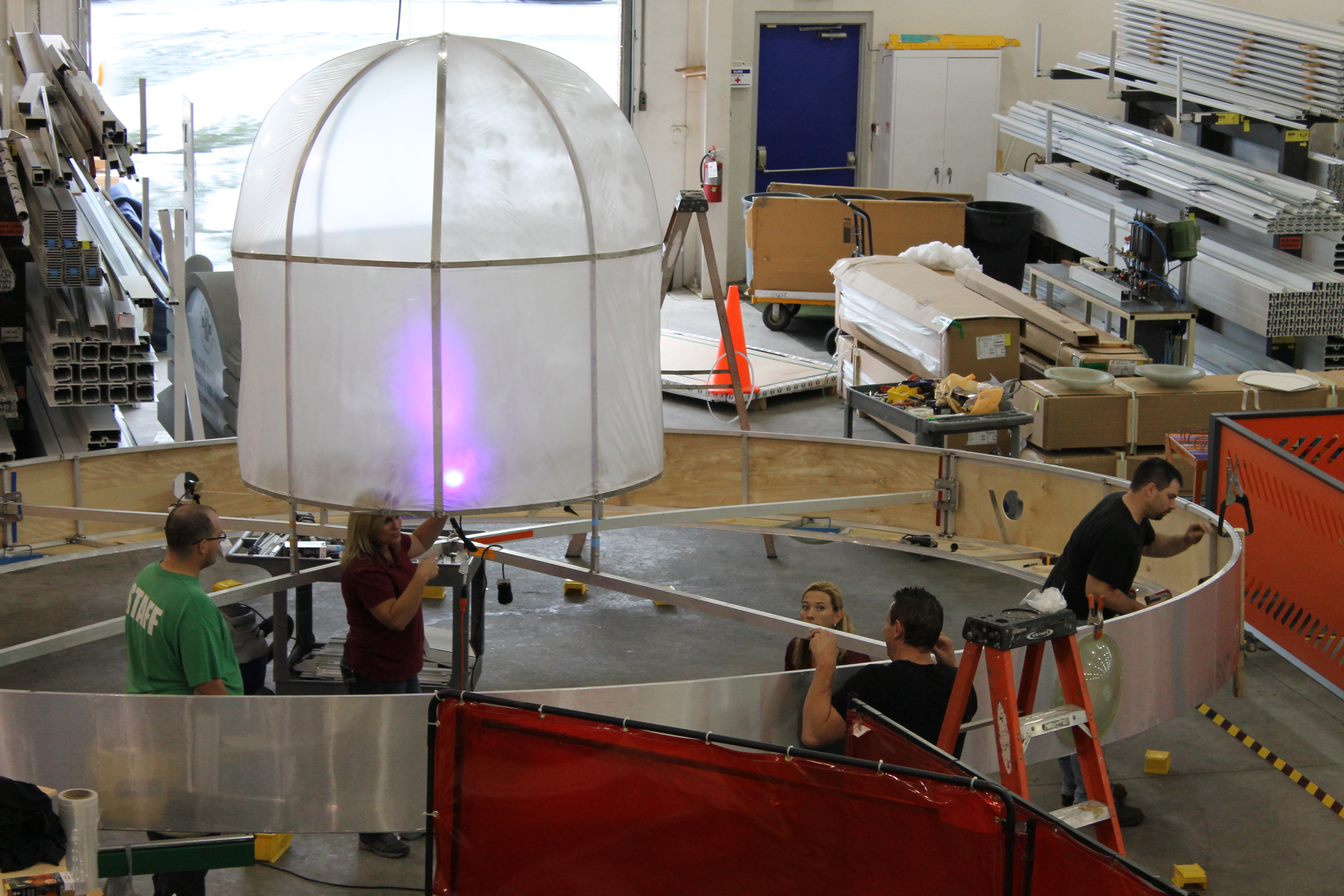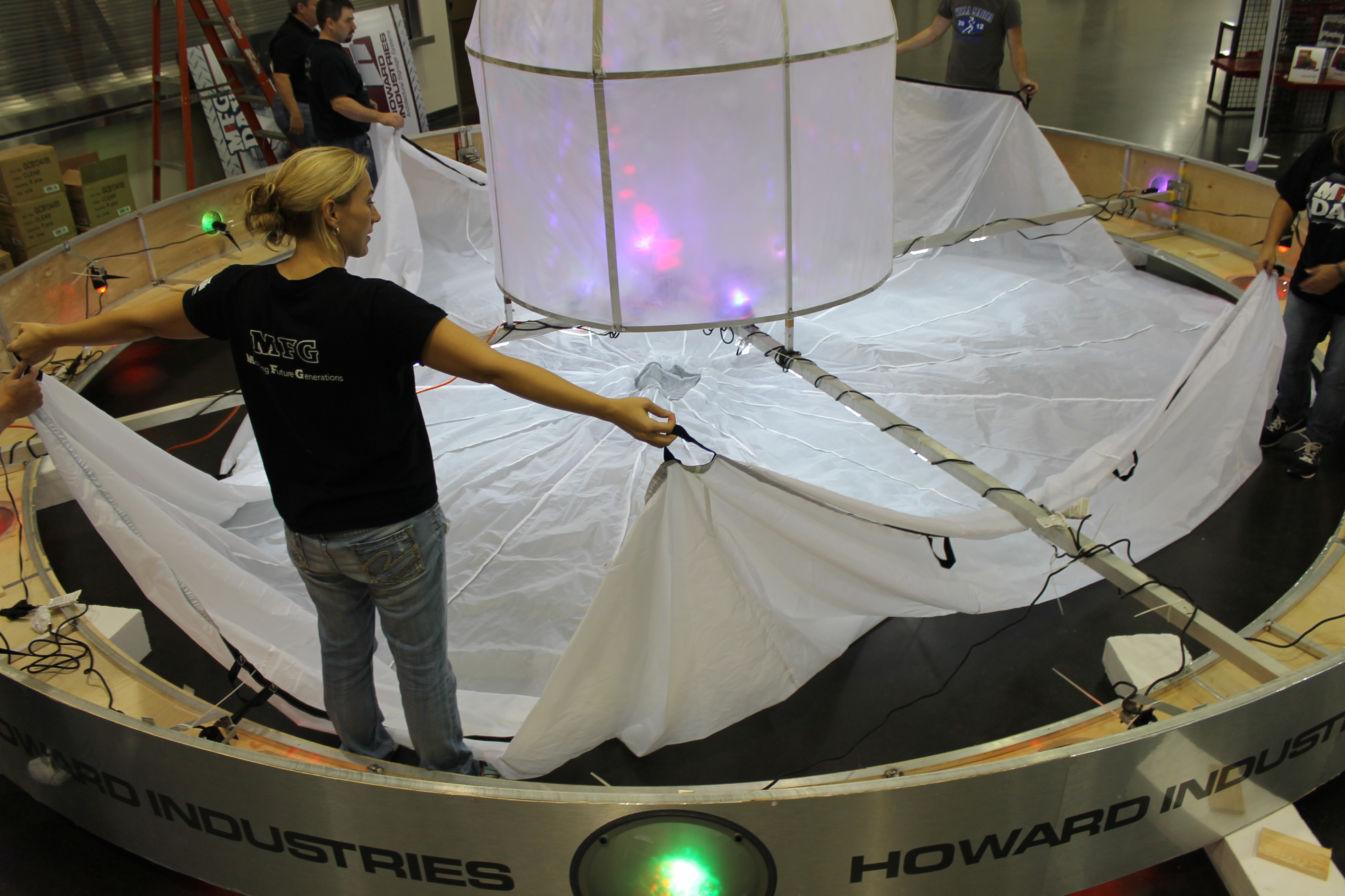 In preparation for the October 5th Manufacturing Day Celebration, Howard Industries conceived an exhibiting theme that involved a 22 foot diameter UFO. Our intention was to peak and engage the interest of attending students with the conceptual idea – “How Far Will Manufacturing Take You?” and then apply this concept to the many career opportunities the signage manufacturing industry has to offer. Follow along with the photos below to see how this spectacle was manufactured by our team!