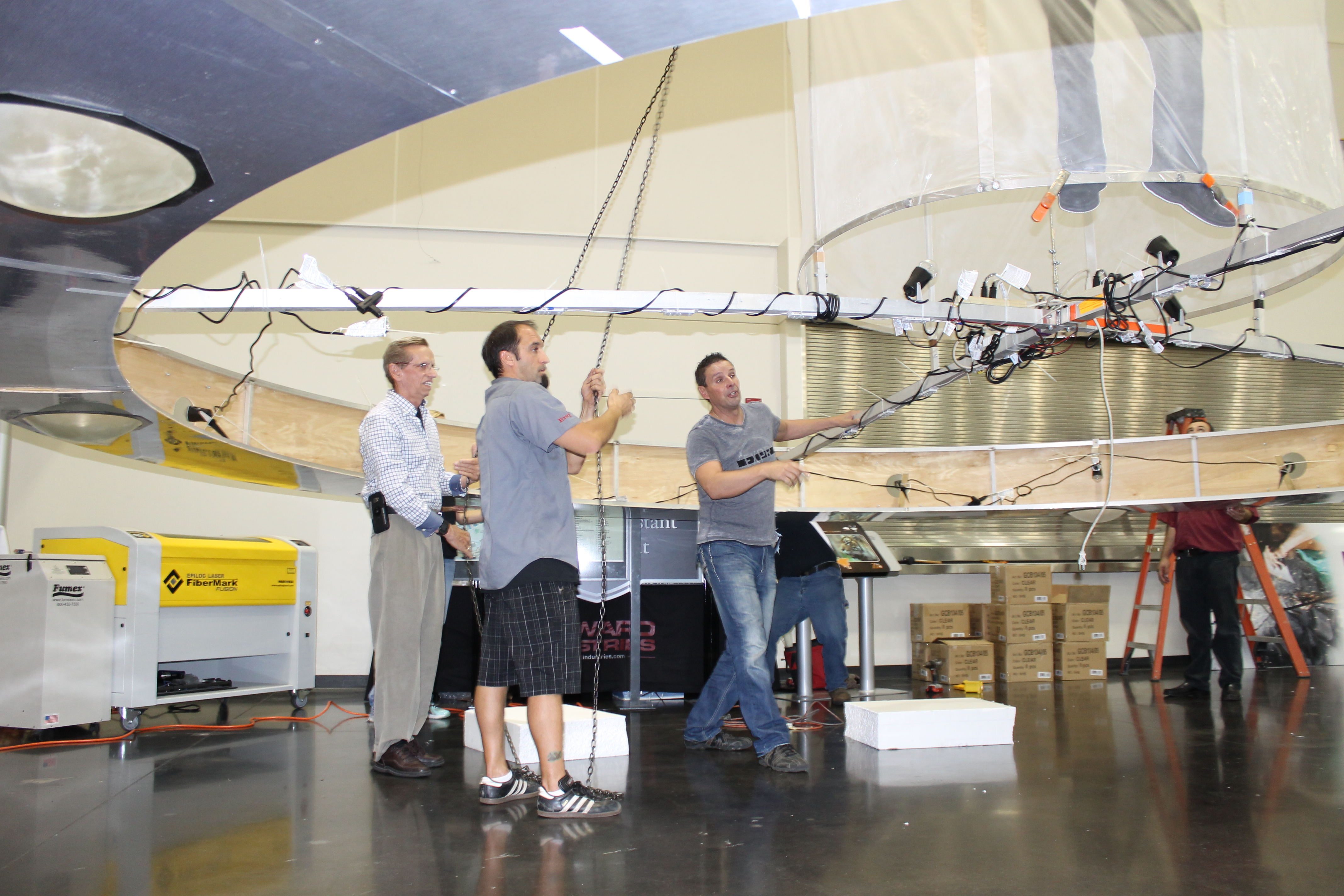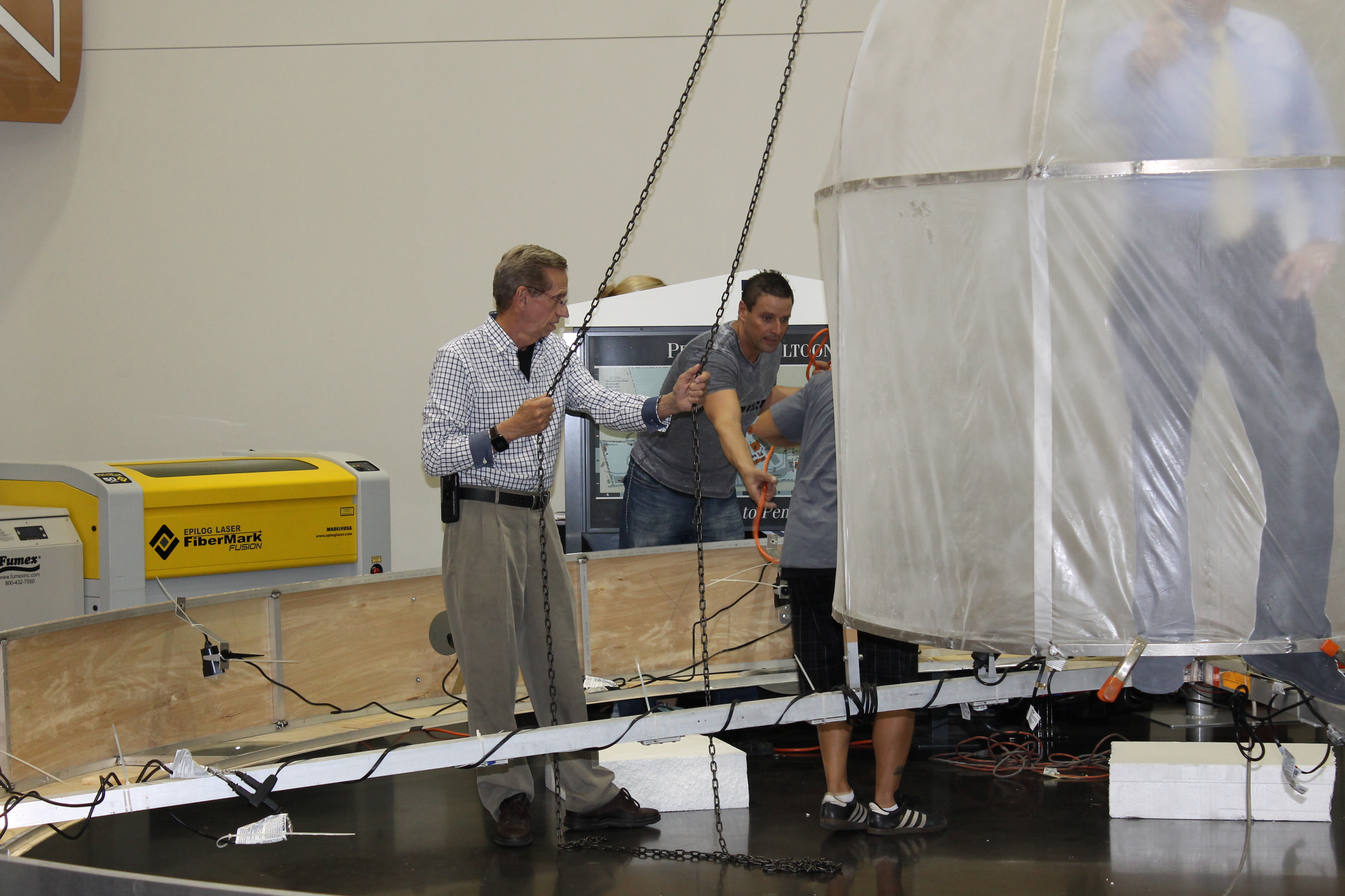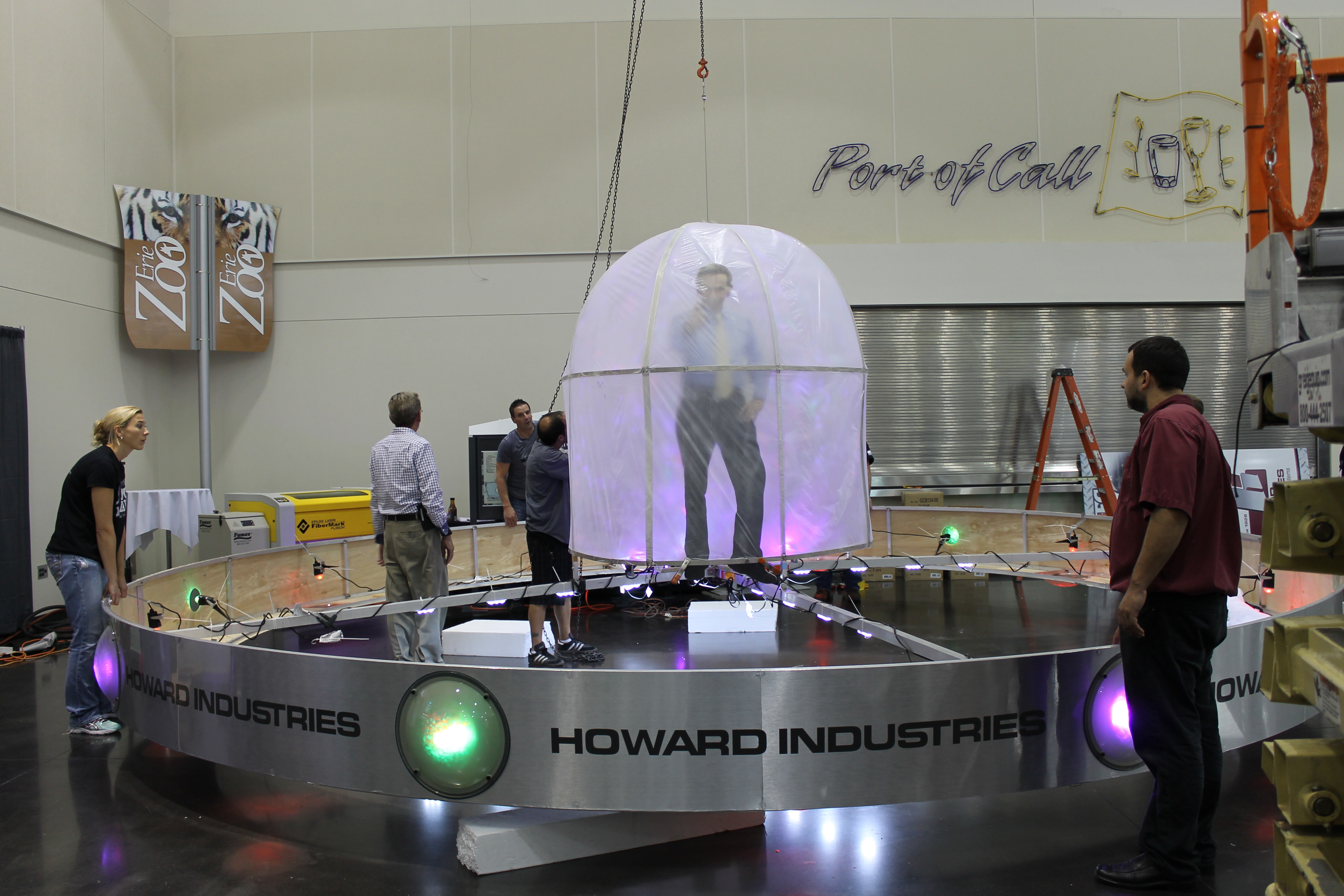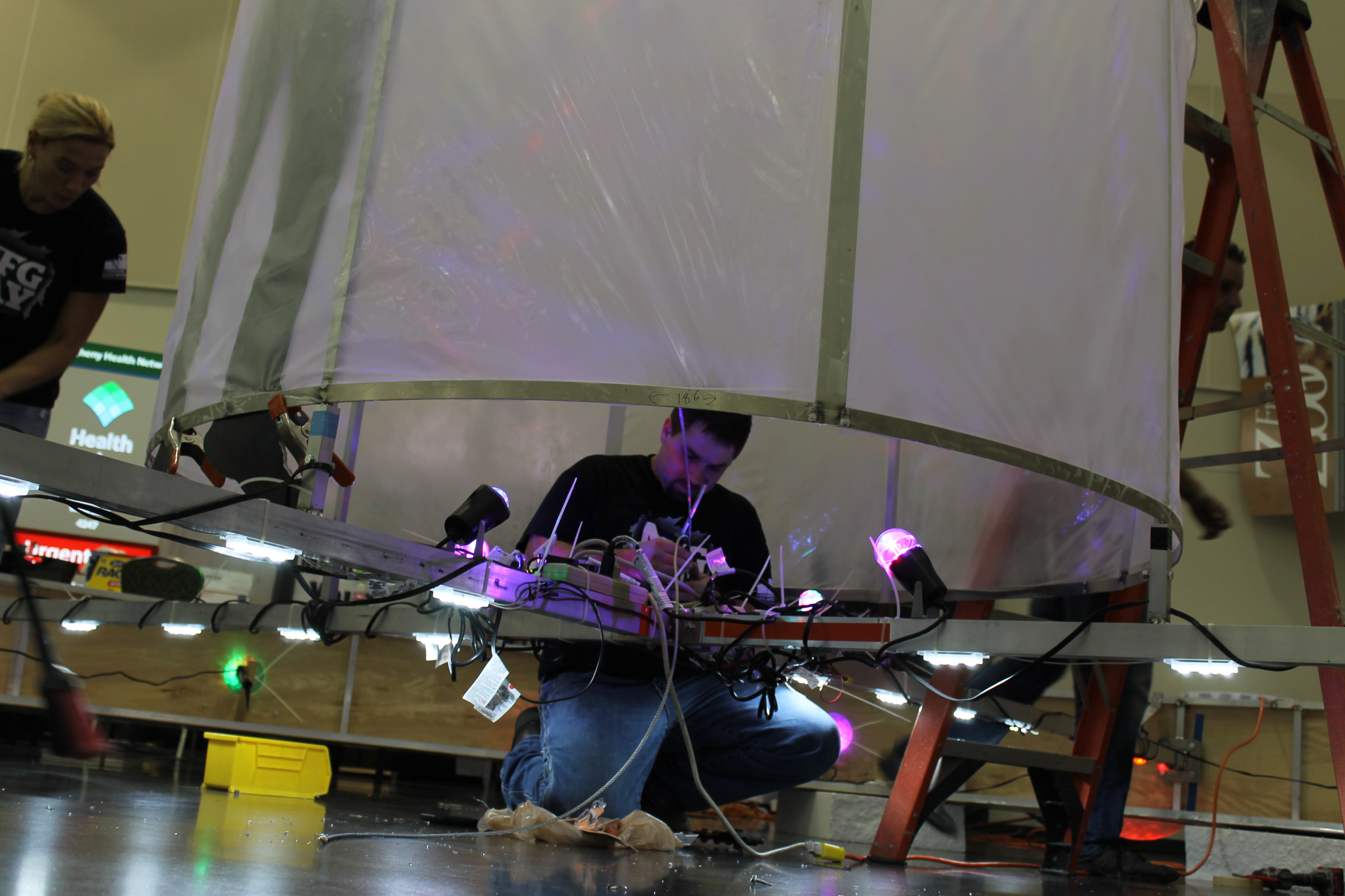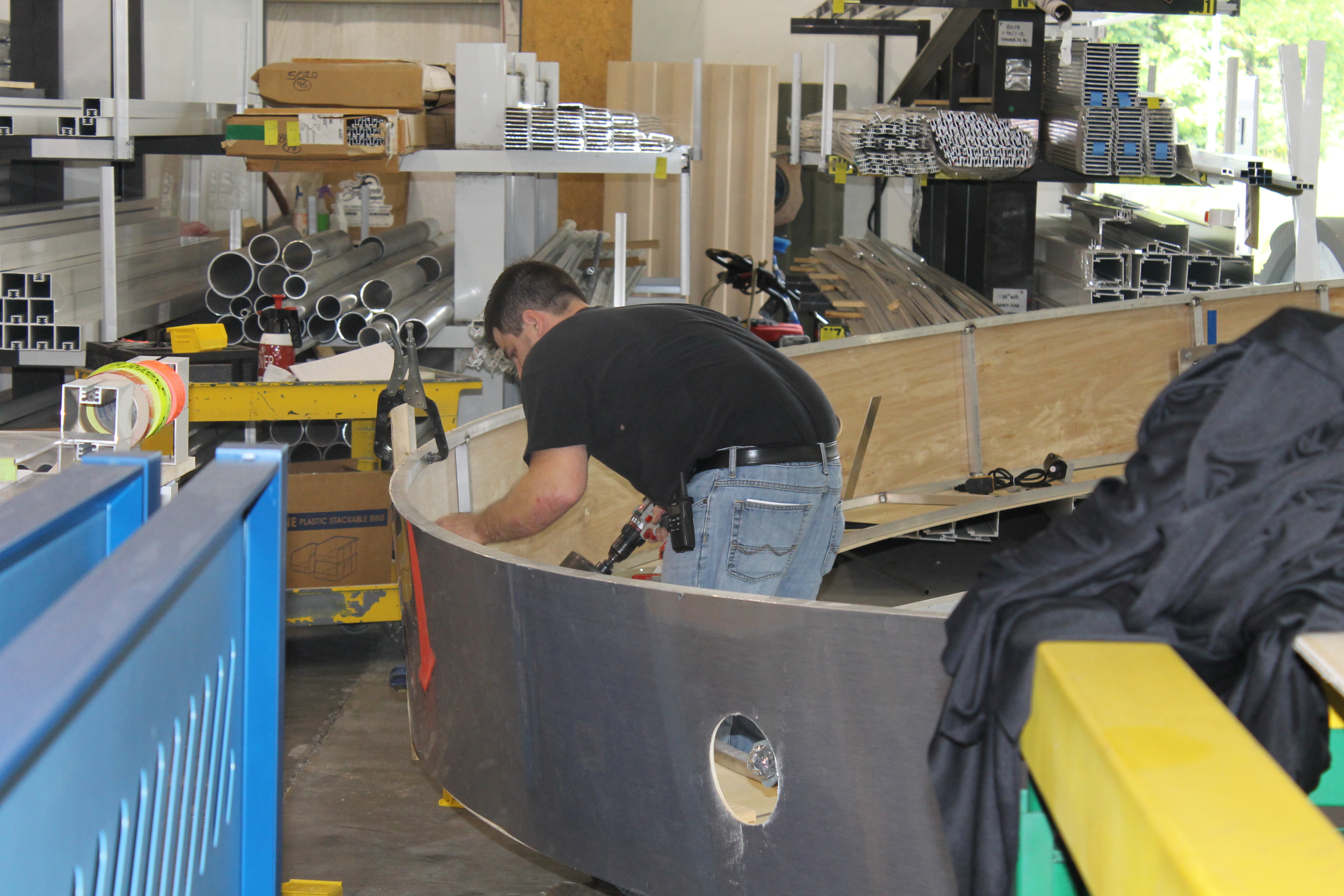 In preparation for the October 5th Manufacturing Day Celebration, Howard Industries conceived an exhibiting theme that involved a 22 foot diameter UFO. Our intention was to peak and engage the interest of attending students with the conceptual idea – “How Far Will Manufacturing Take You?” and then apply this concept to the many career opportunities the signage manufacturing industry has to offer. Follow along with the photos below to see how this spectacle was manufactured by our team!