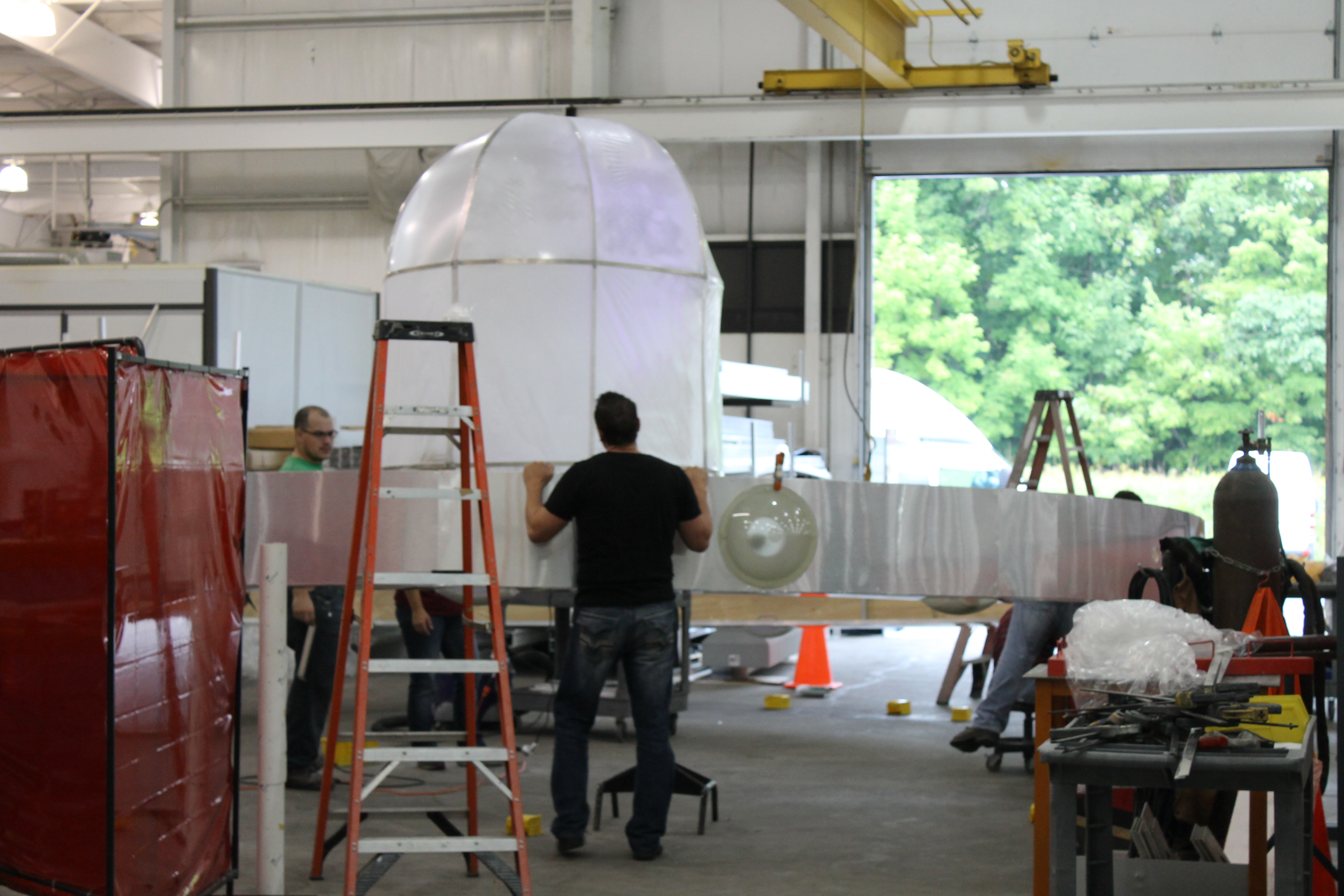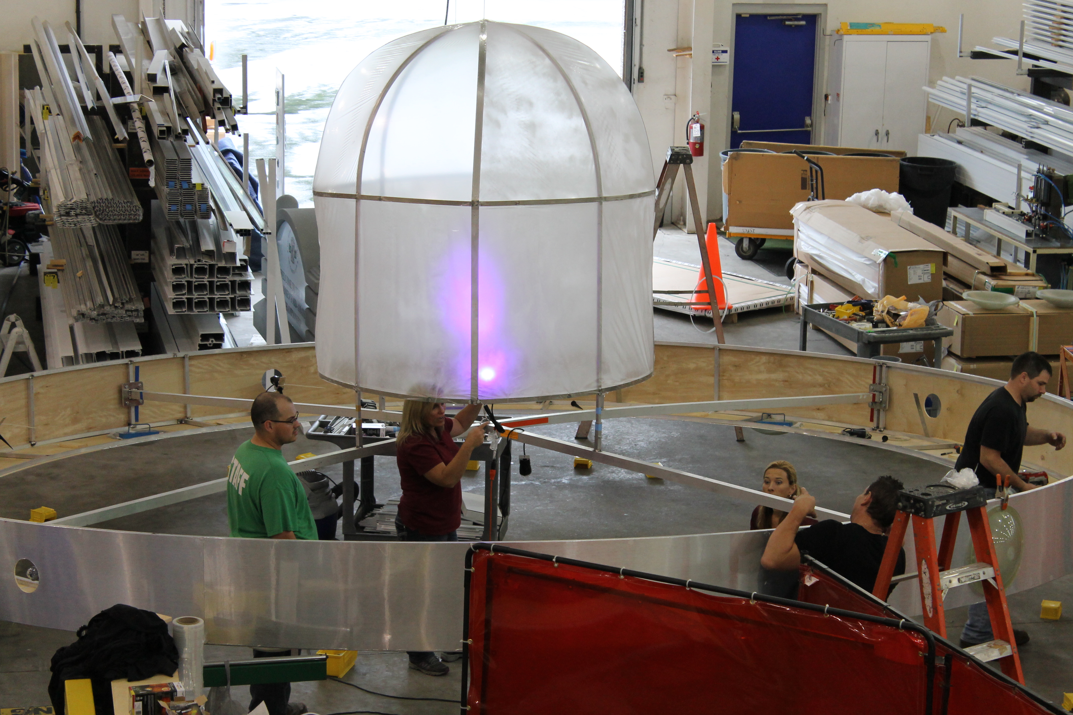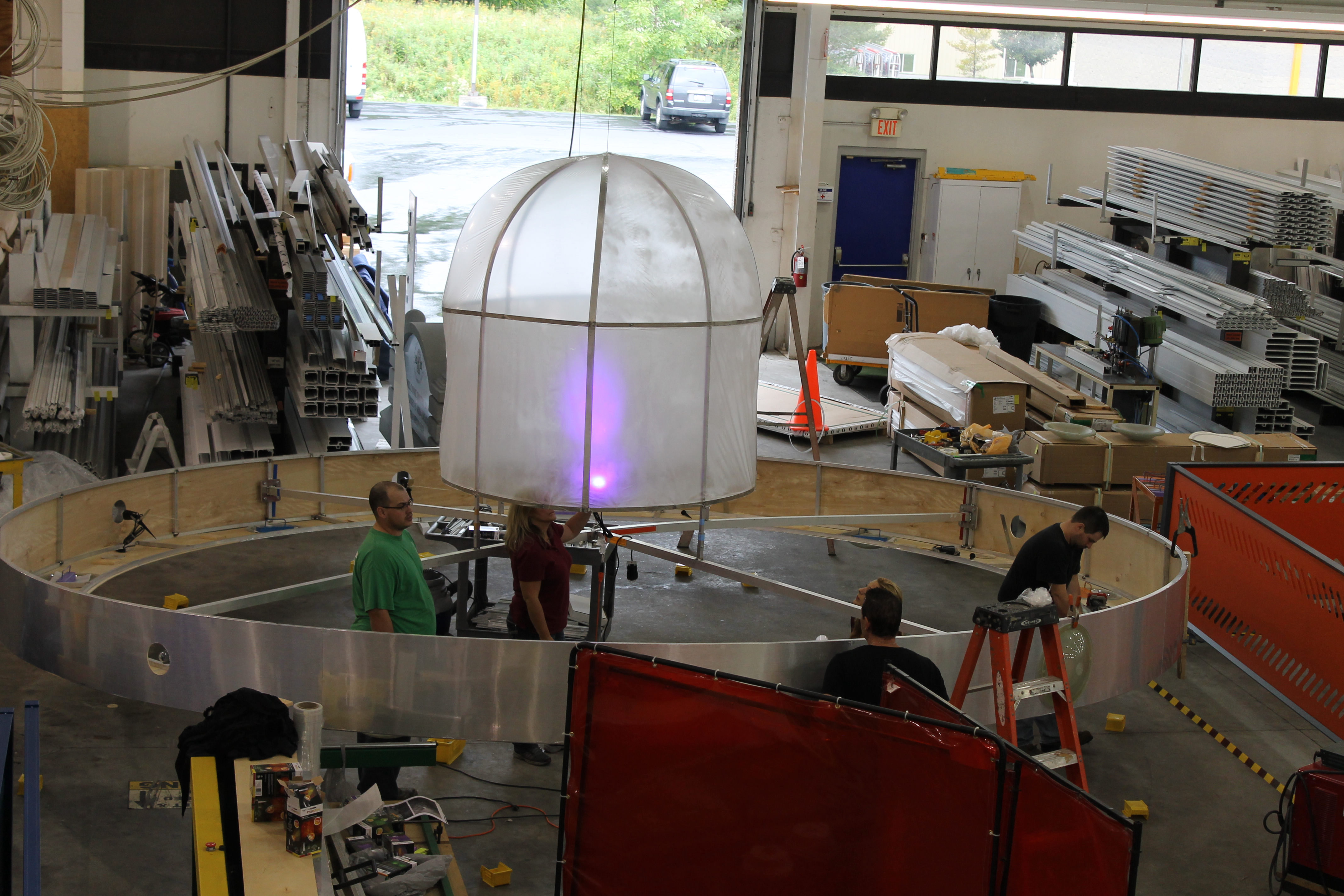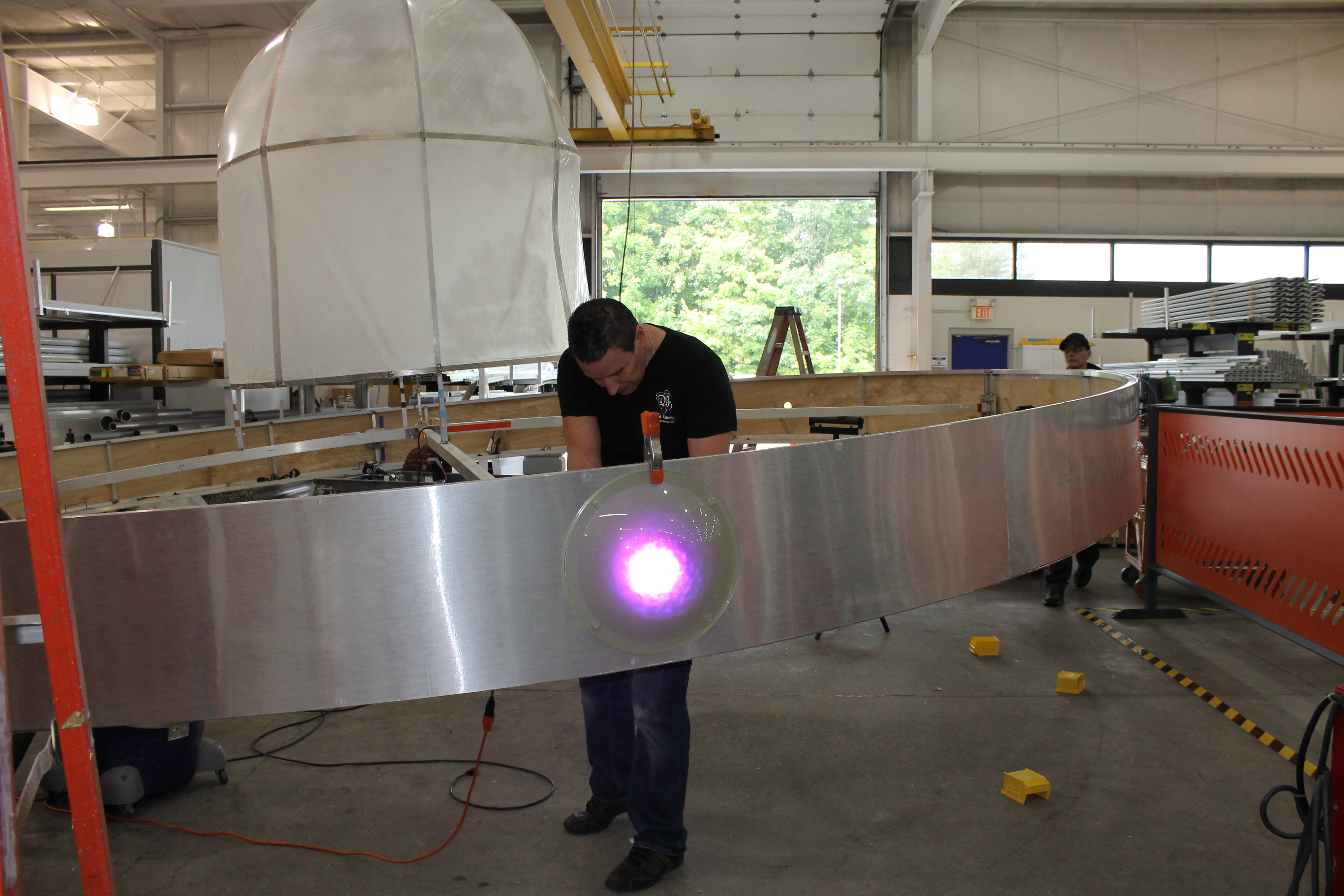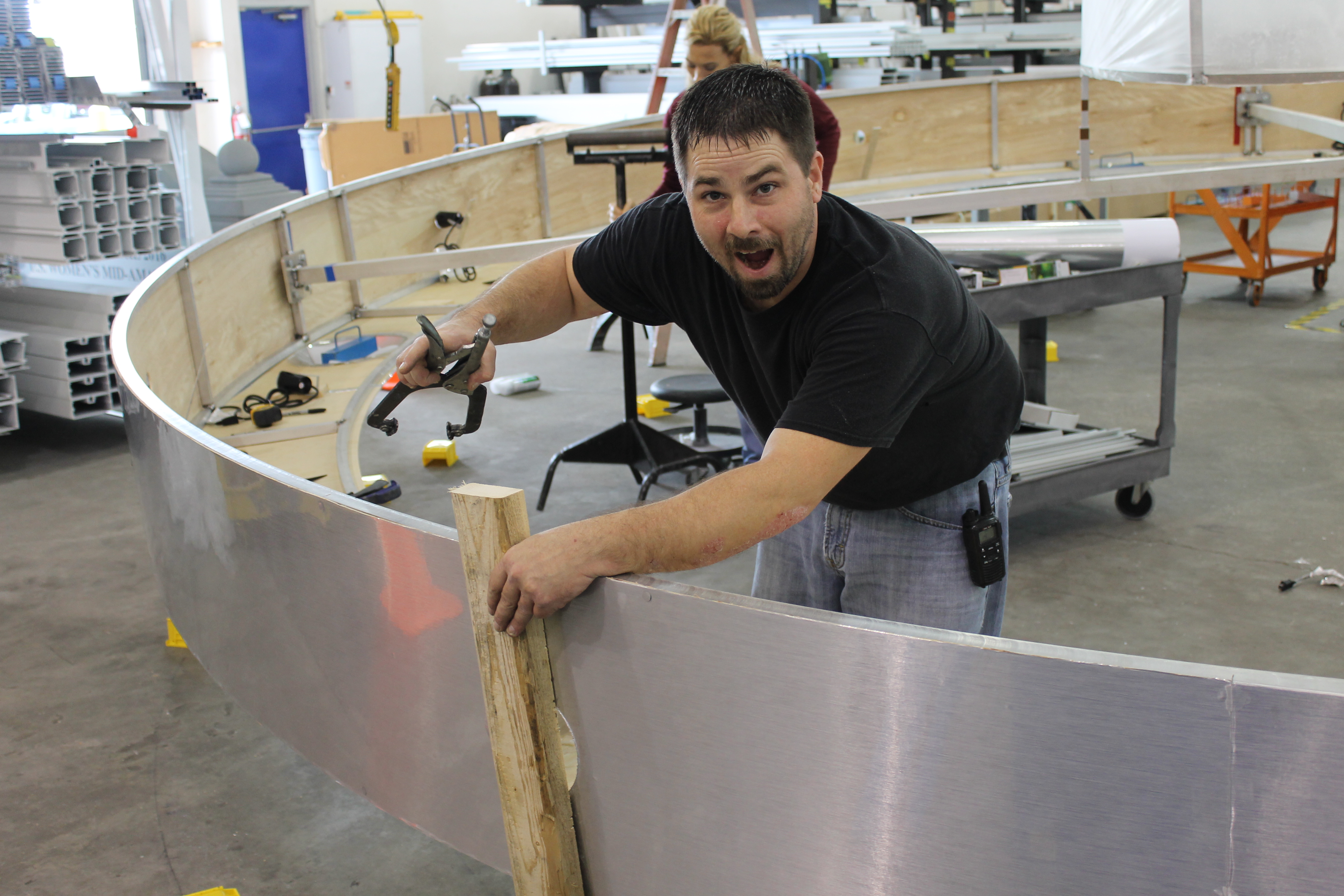 In preparation for the October 5th Manufacturing Day Celebration, Howard Industries conceived an exhibiting theme that involved a 22 foot diameter UFO. Our intention was to peak and engage the interest of attending students with the conceptual idea – “How Far Will Manufacturing Take You?” and then apply this concept to the many career opportunities the signage manufacturing industry has to offer. Follow along with the photos below to see how this spectacle was manufactured by our team!