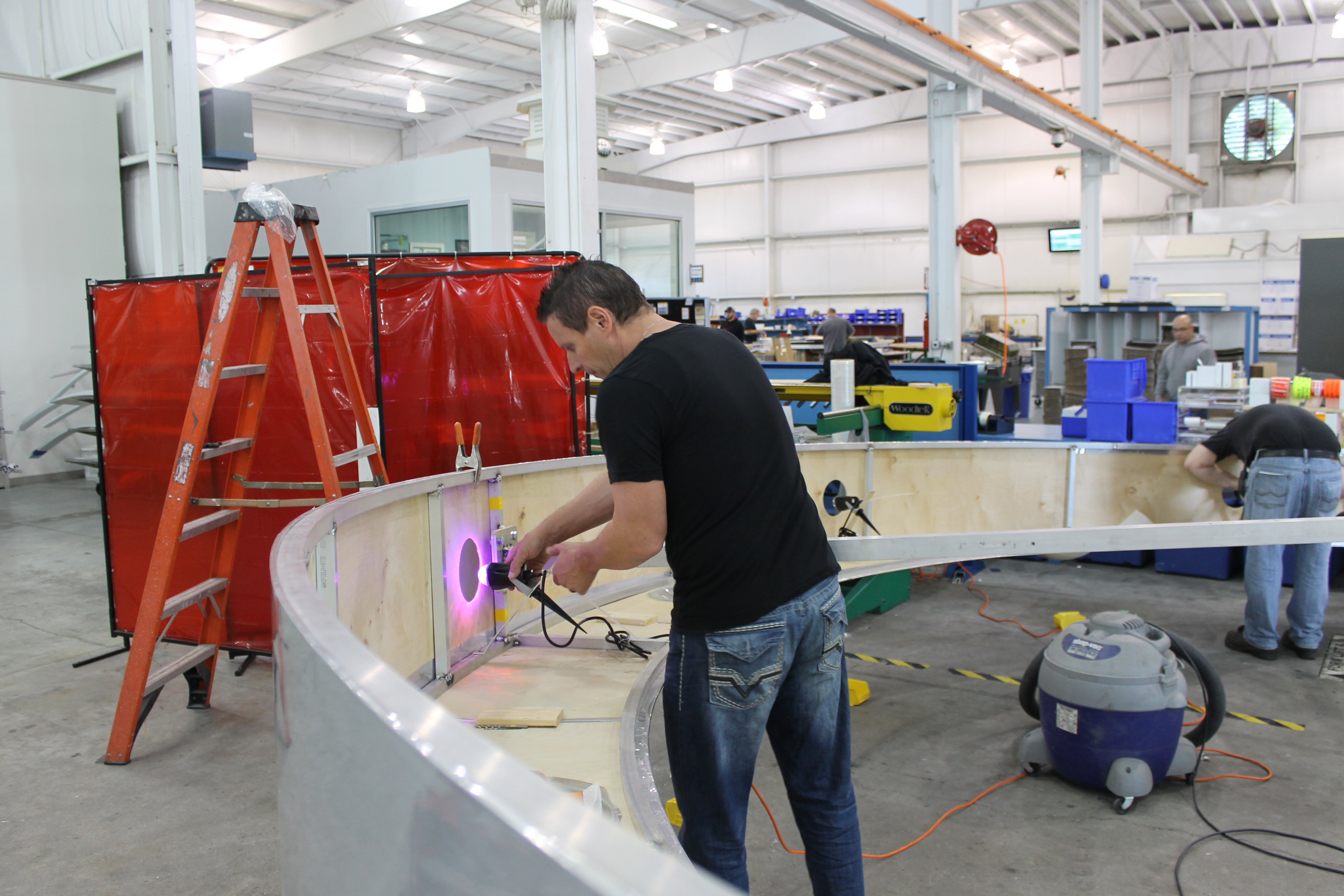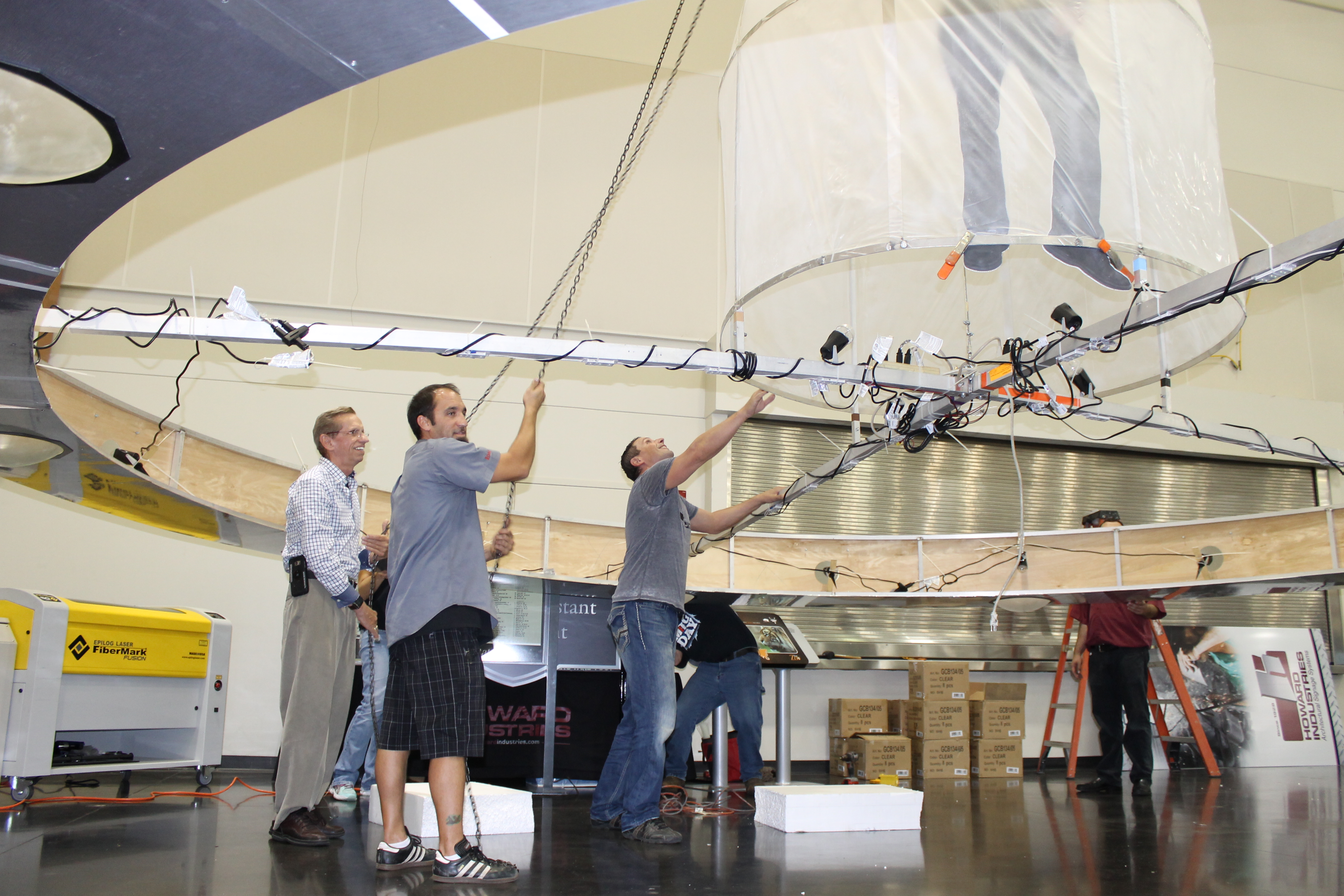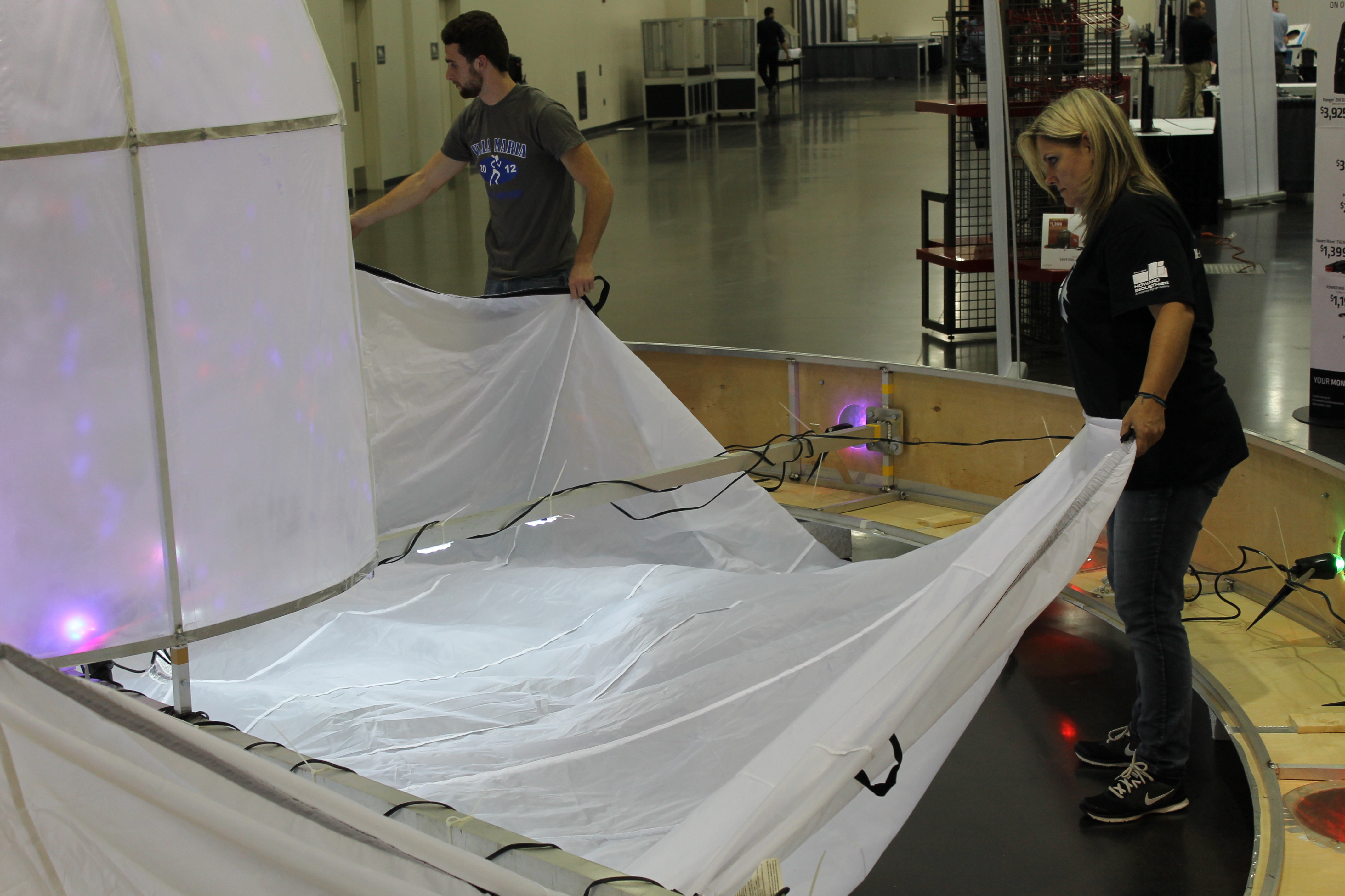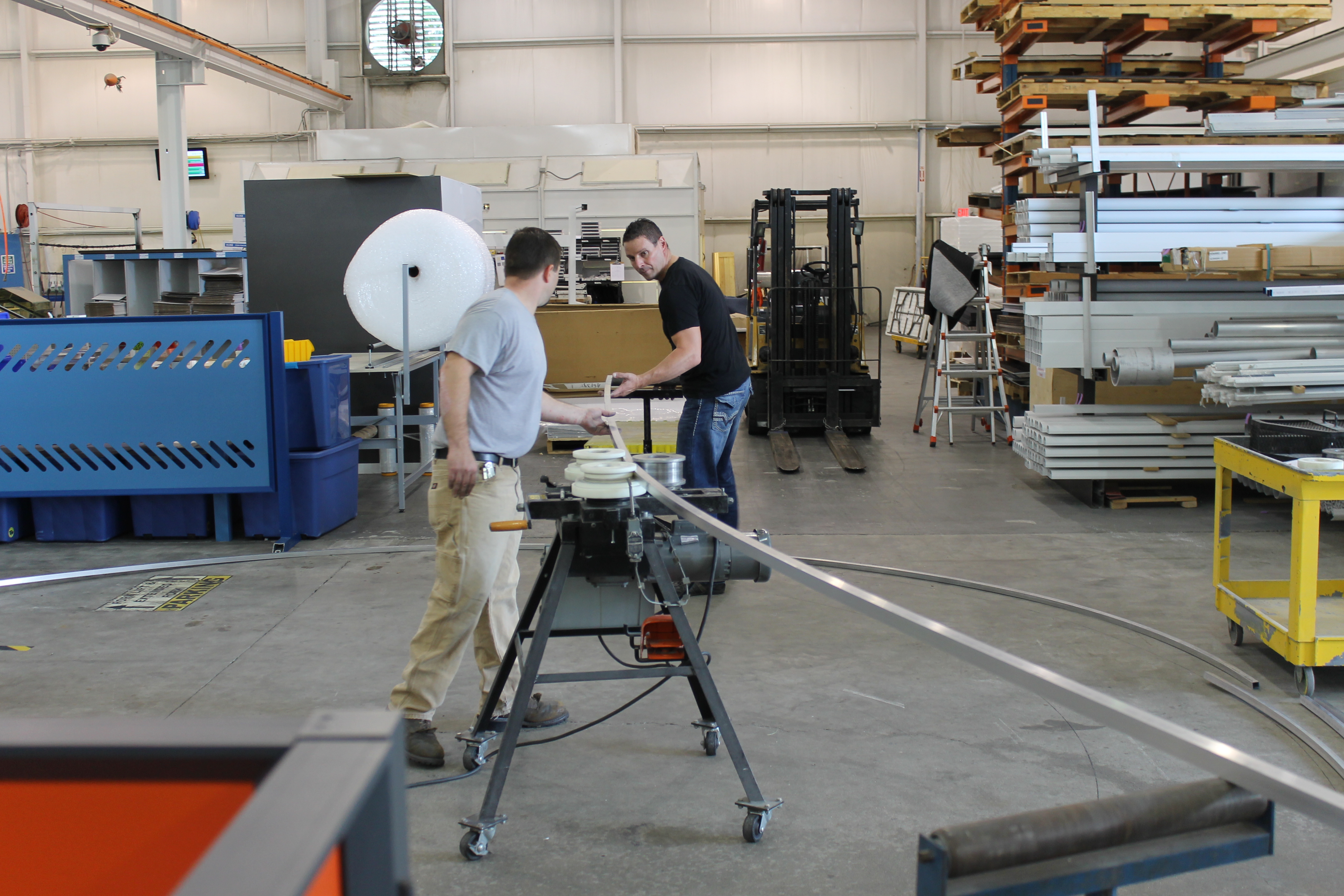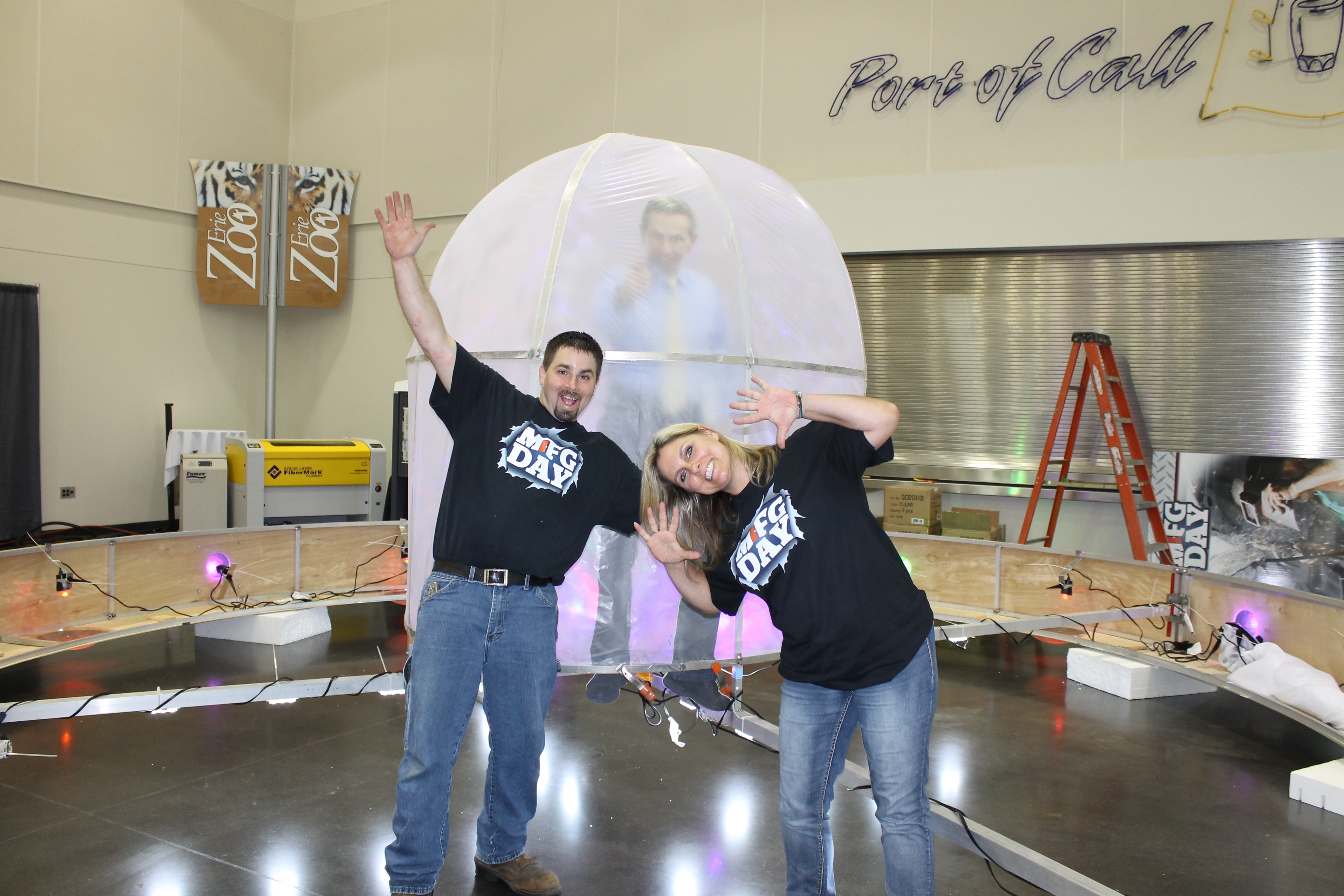In preparation for the October 5th Manufacturing Day Celebration, Howard Industries conceived an exhibiting theme that involved a 22 foot diameter UFO. Our intention was to peak and engage the interest of attending students with the conceptual idea – “How Far Will Manufacturing Take You?” and then apply this concept to the many career opportunities the signage manufacturing industry has to offer. Follow along with the photos below to see how this spectacle was manufactured by our team!