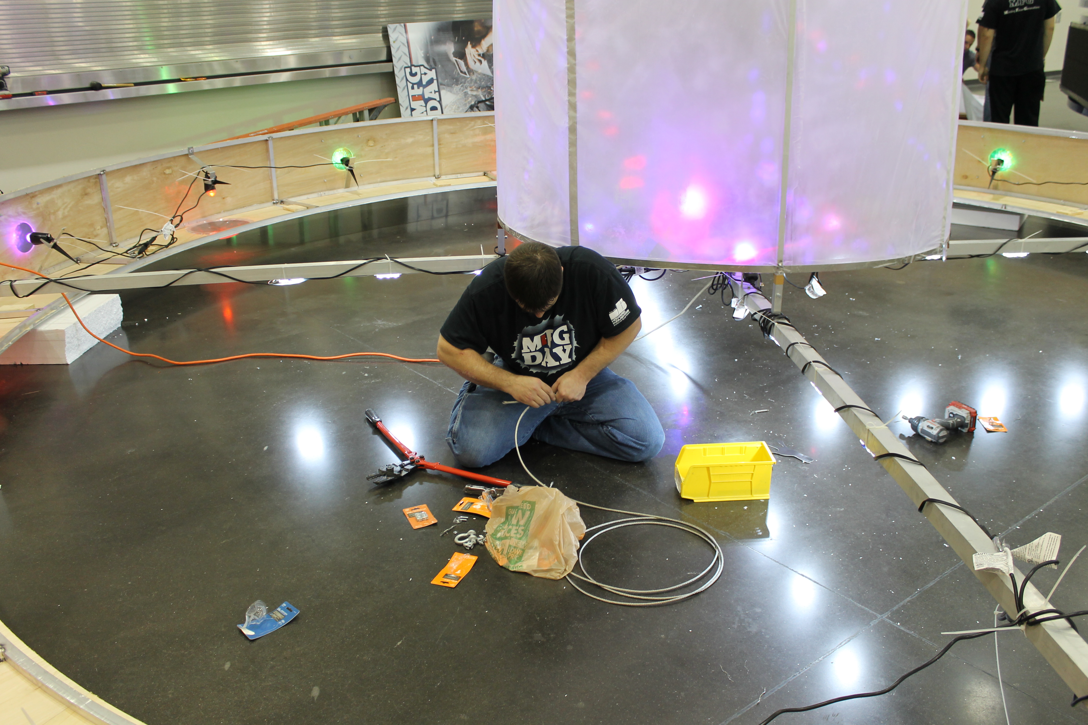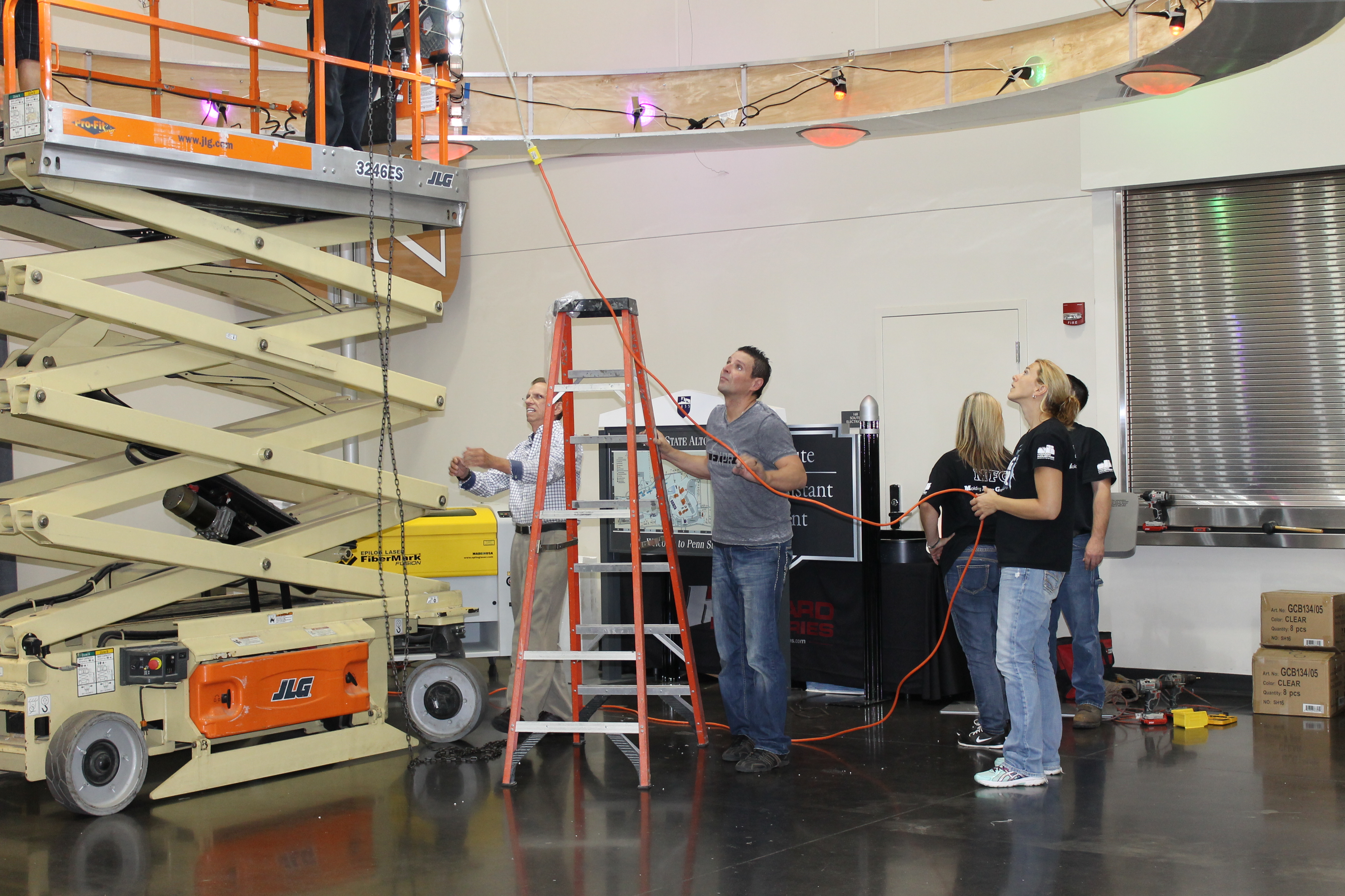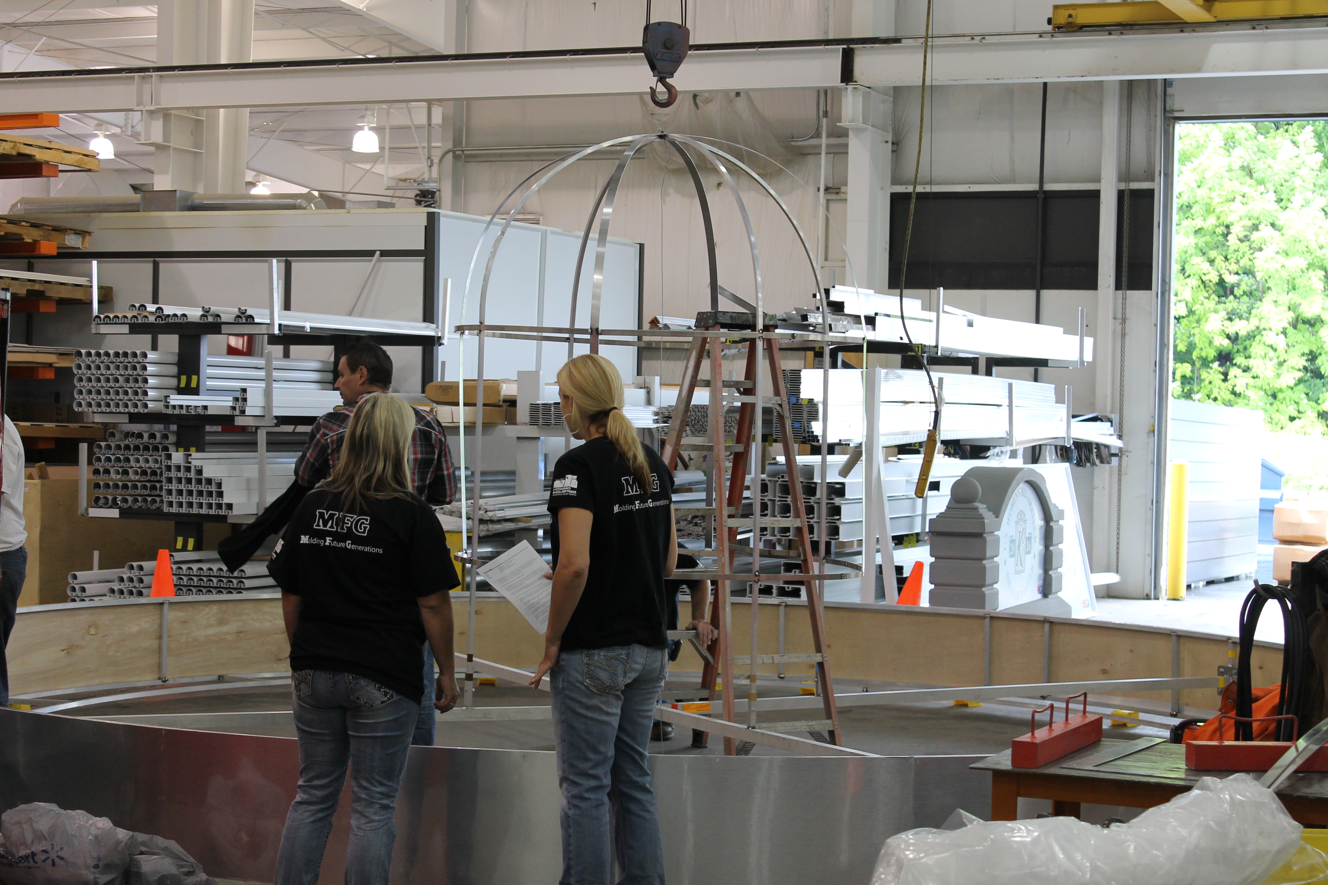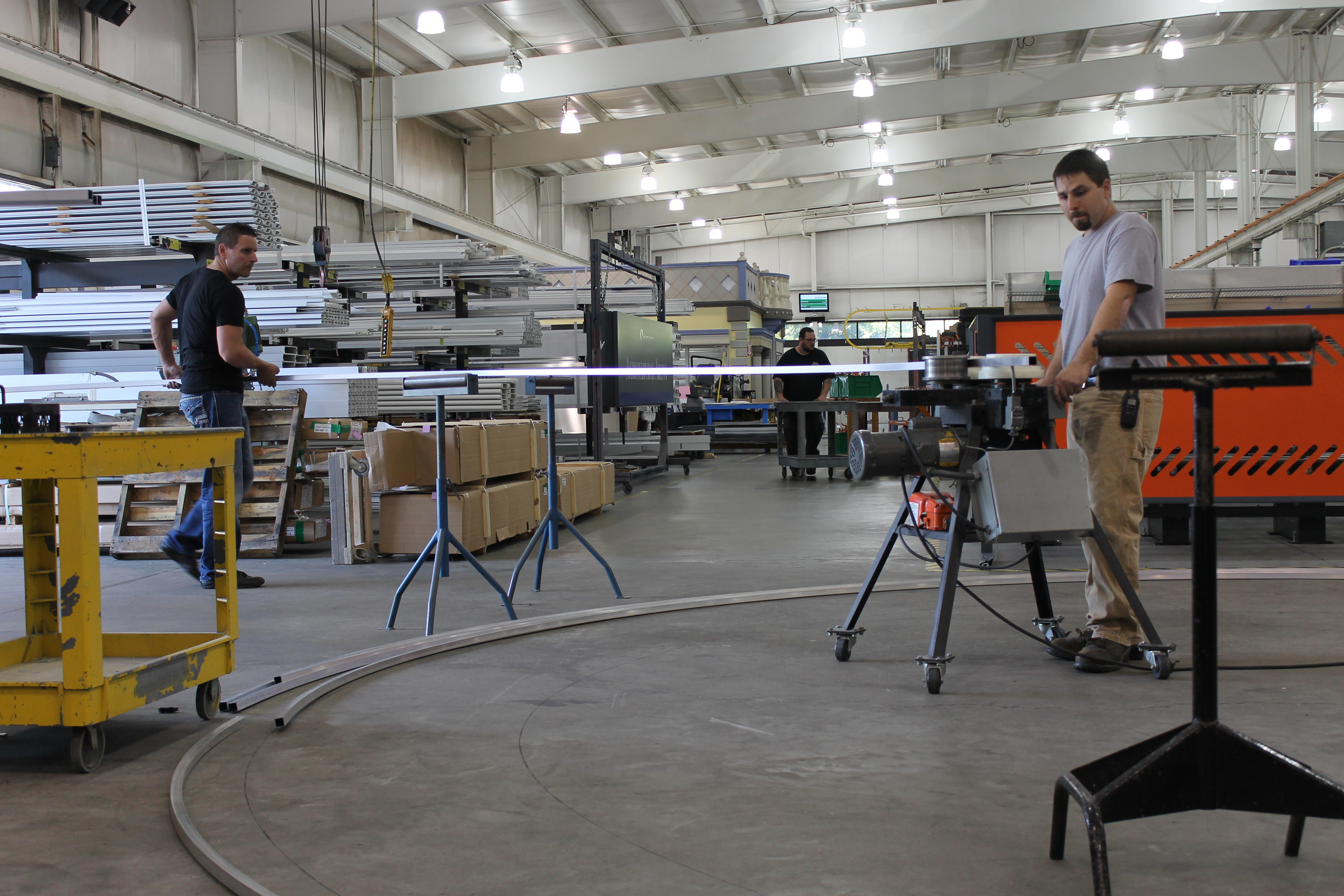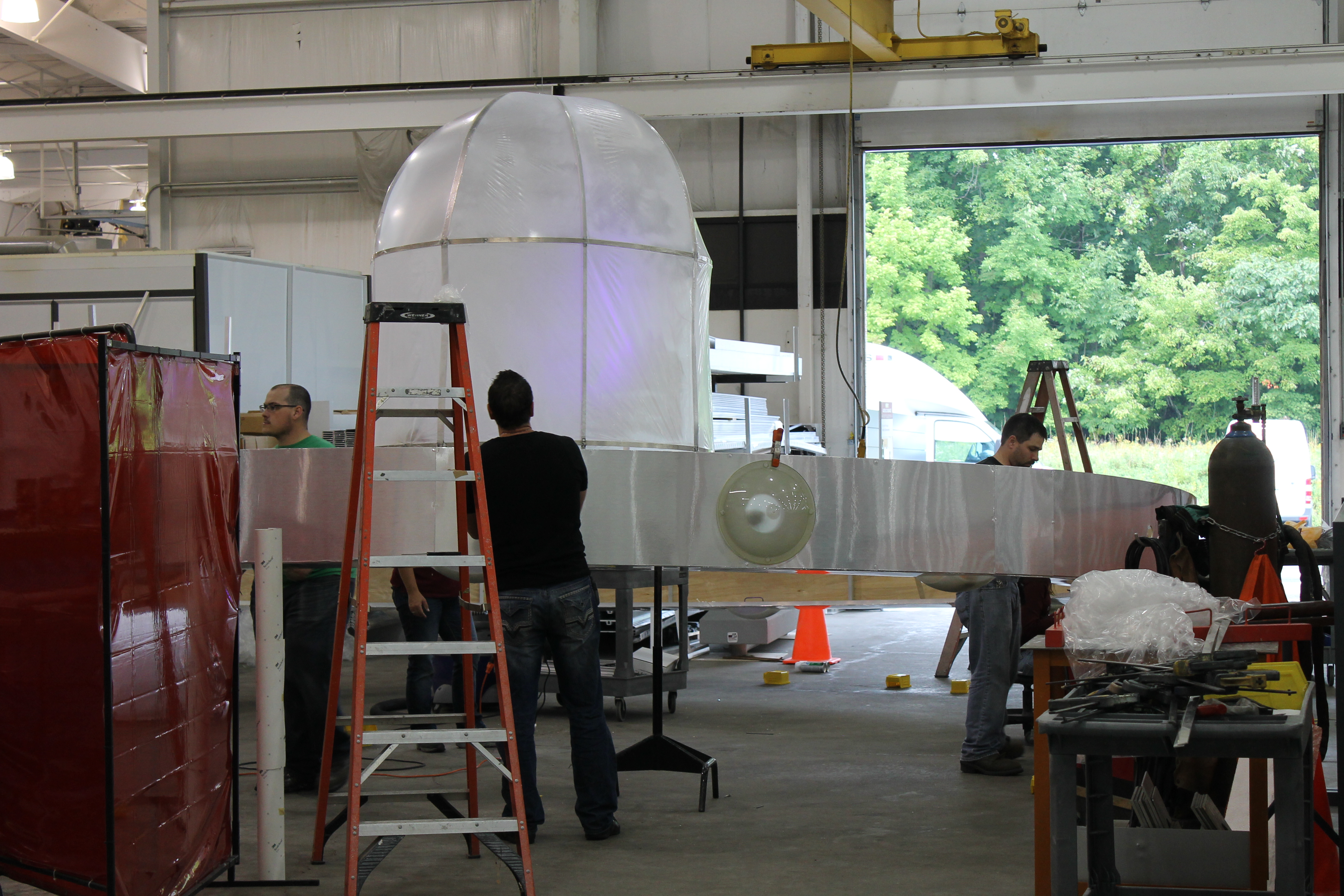 In preparation for the October 5th Manufacturing Day Celebration, Howard Industries conceived an exhibiting theme that involved a 22 foot diameter UFO. Our intention was to peak and engage the interest of attending students with the conceptual idea – “How Far Will Manufacturing Take You?” and then apply this concept to the many career opportunities the signage manufacturing industry has to offer. Follow along with the photos below to see how this spectacle was manufactured by our team!
