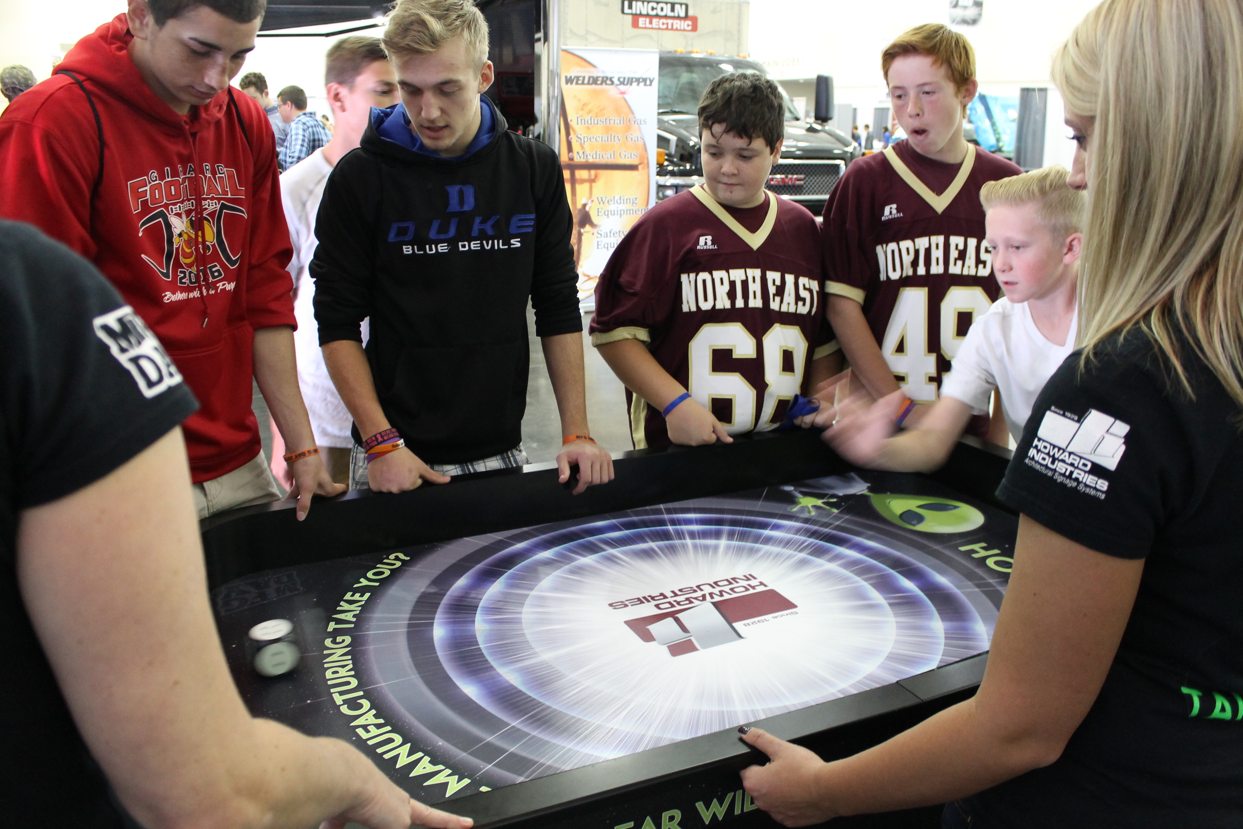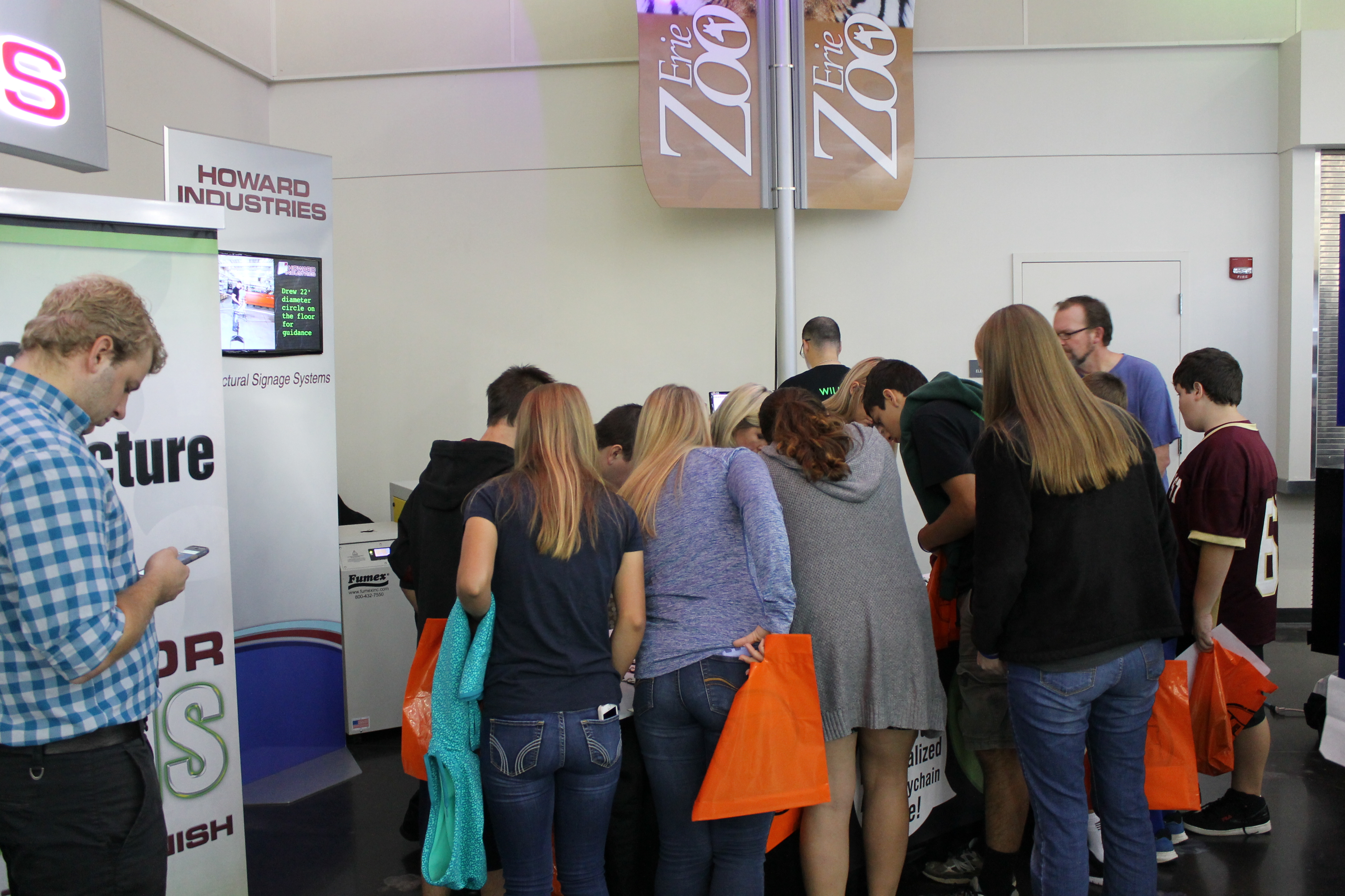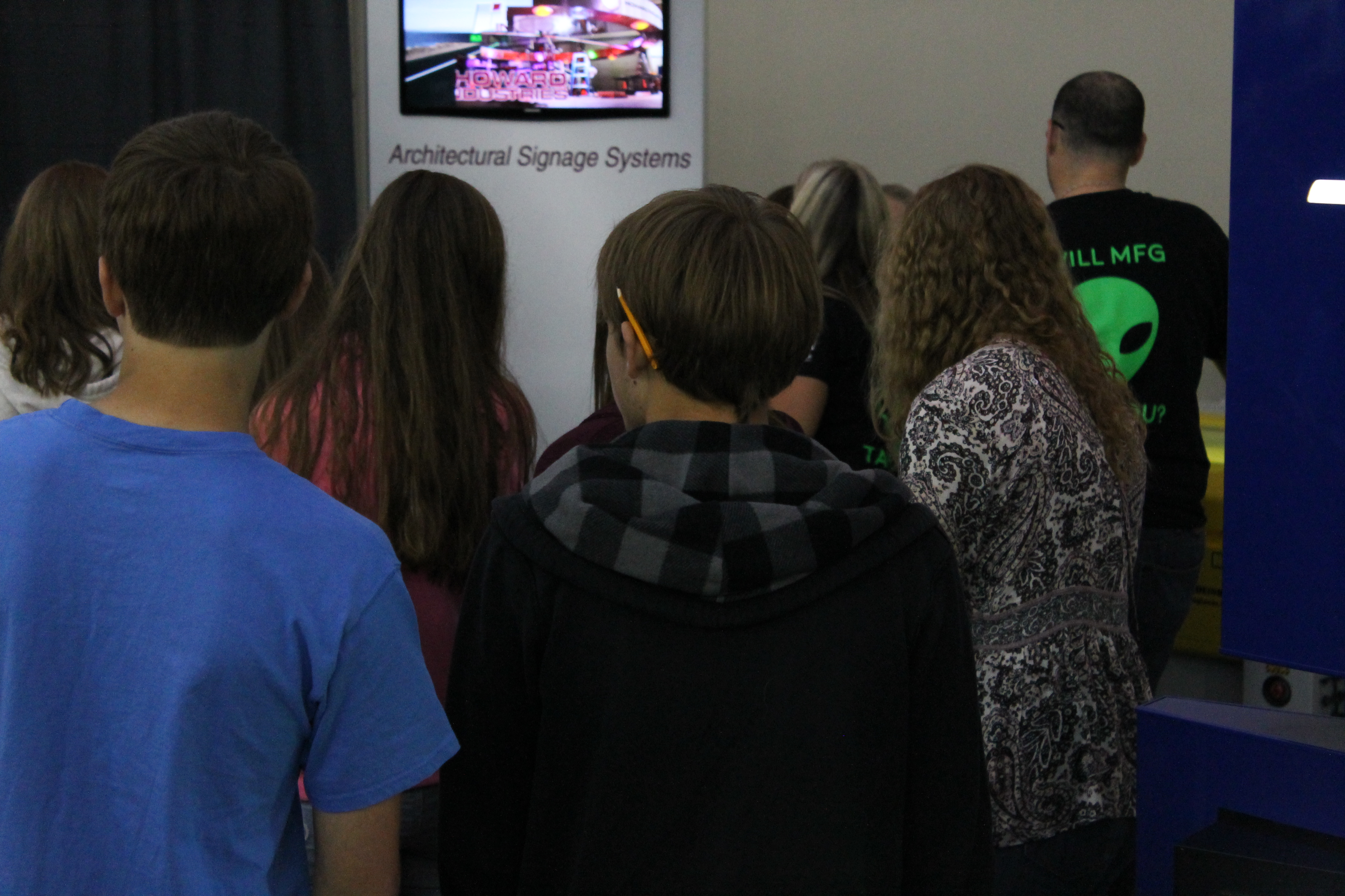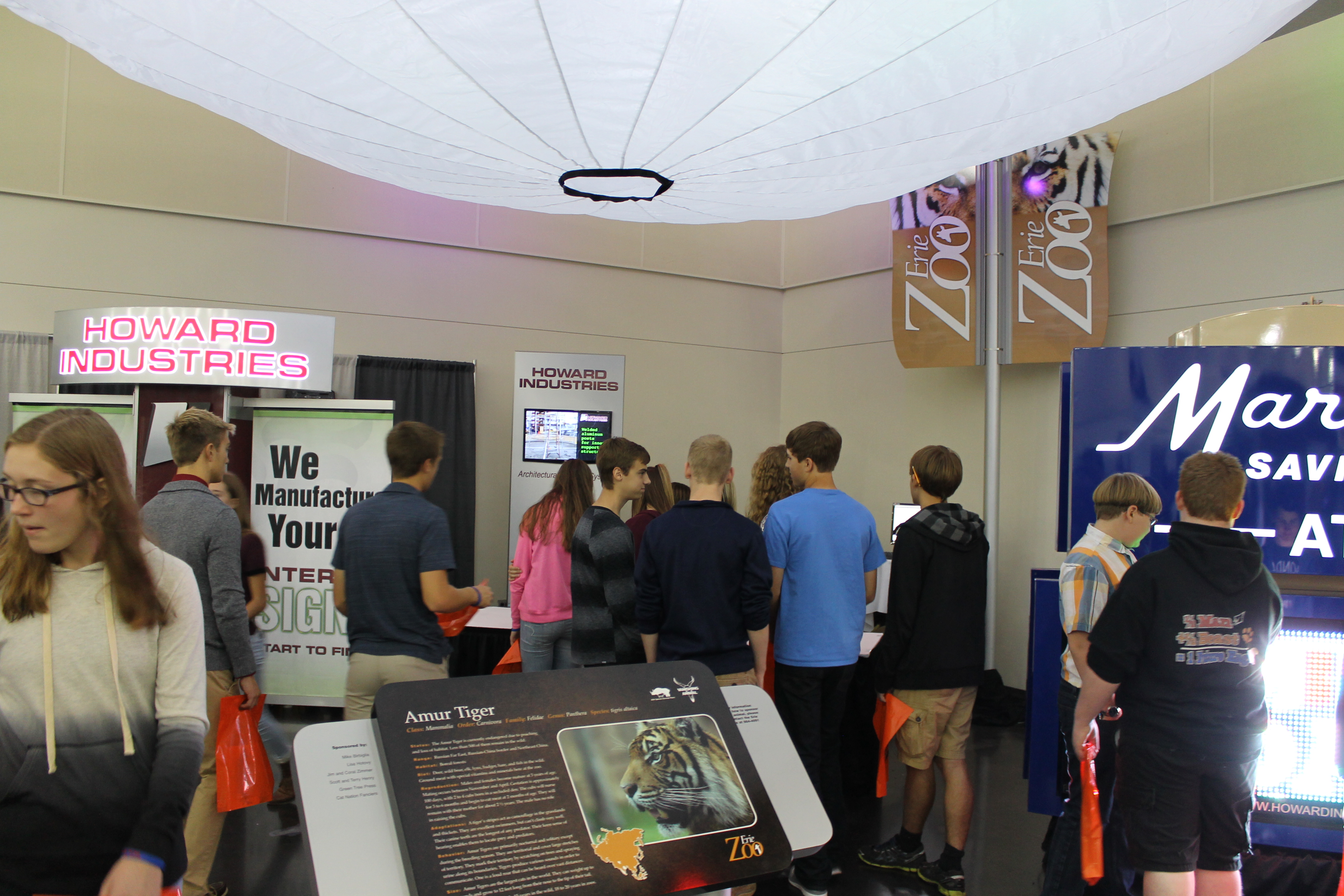 The Manufacturing and Business Association’s MFG Day Celebration welcomed over two thousand inquisitive students from the Erie area. The Howard Industries Architectural Signage booth gave students the opportunity to learn about the signage manufacturing industry and the variety of career opportunities it has to offer. The theme “How Far Will Manufacturing Take You?” was