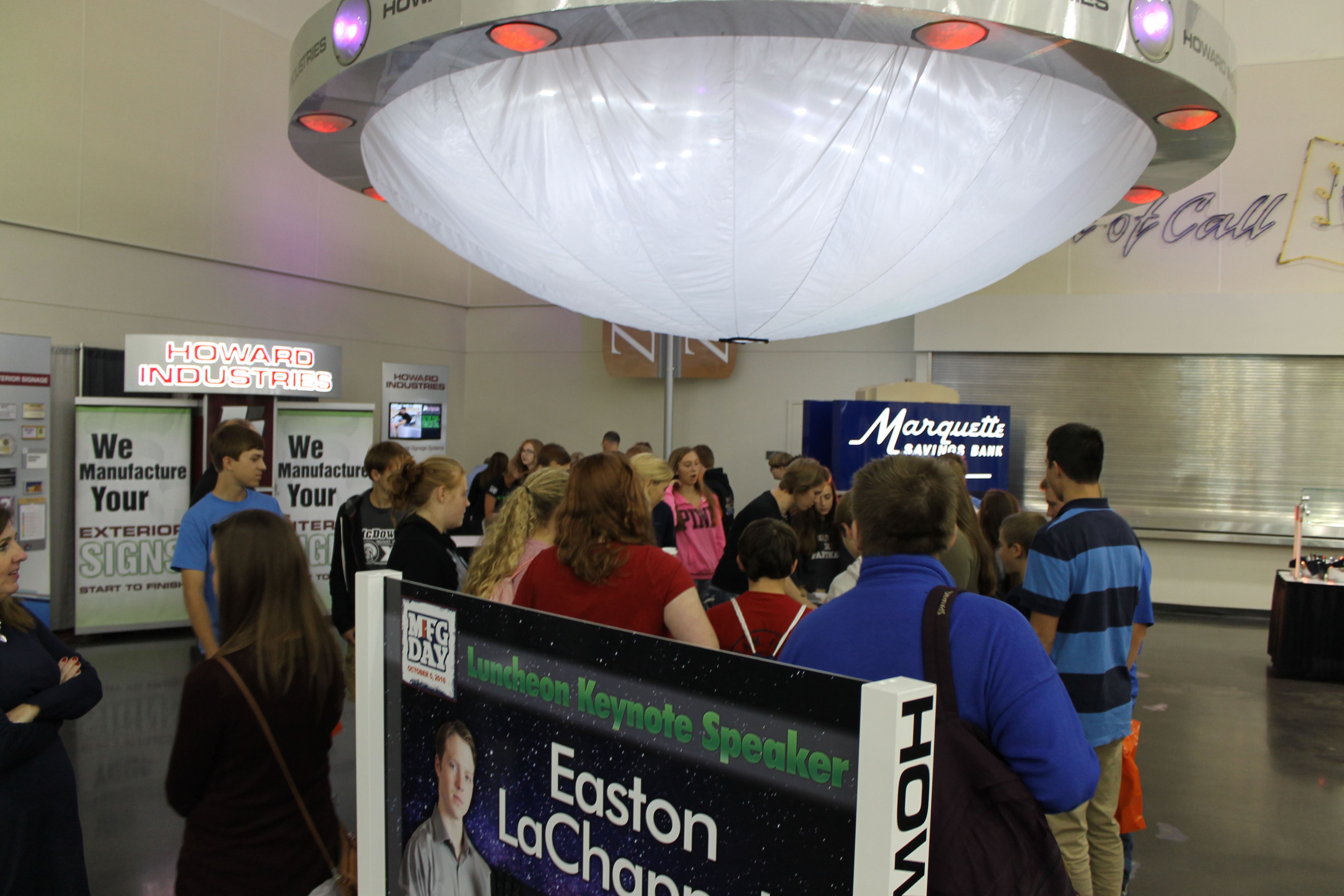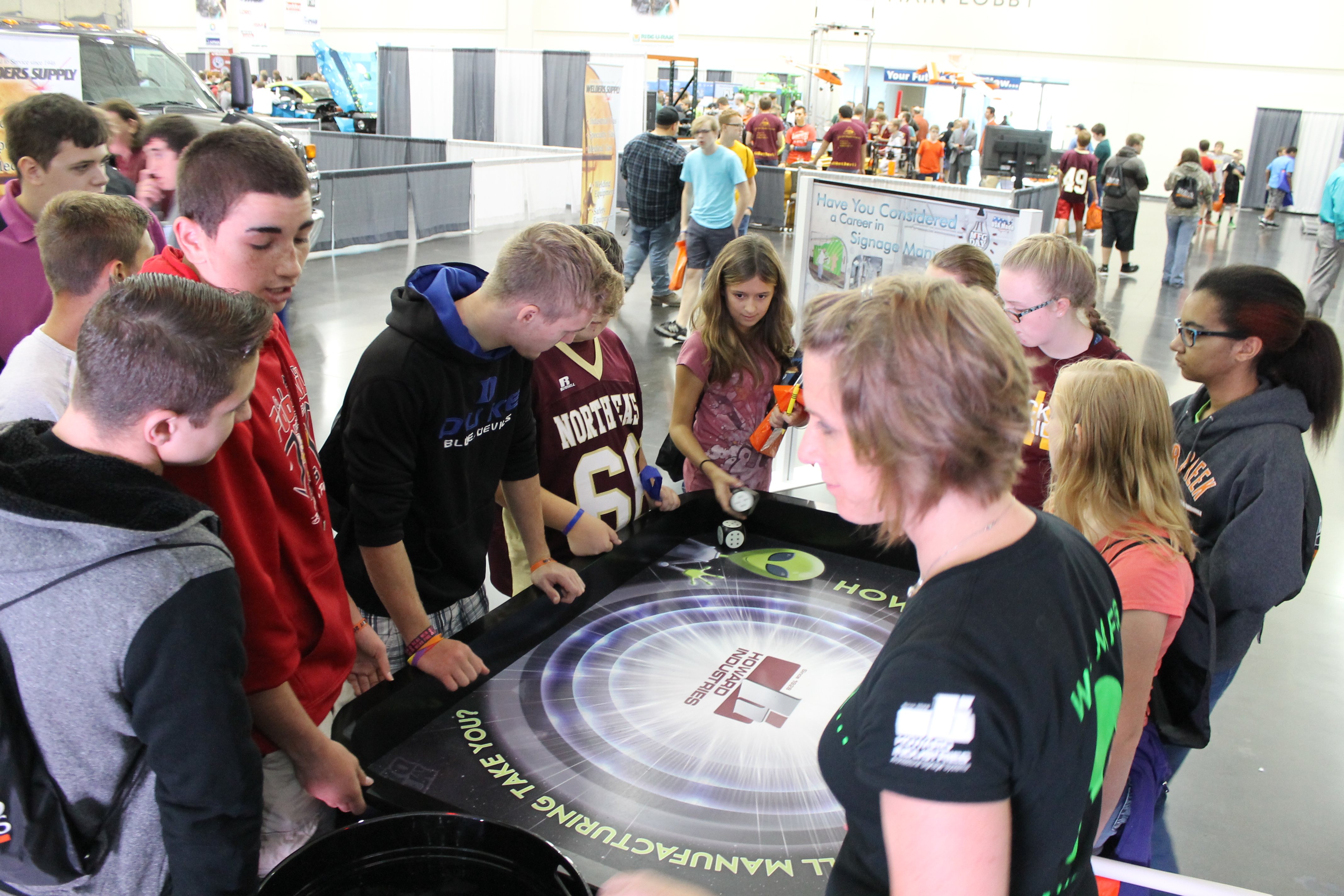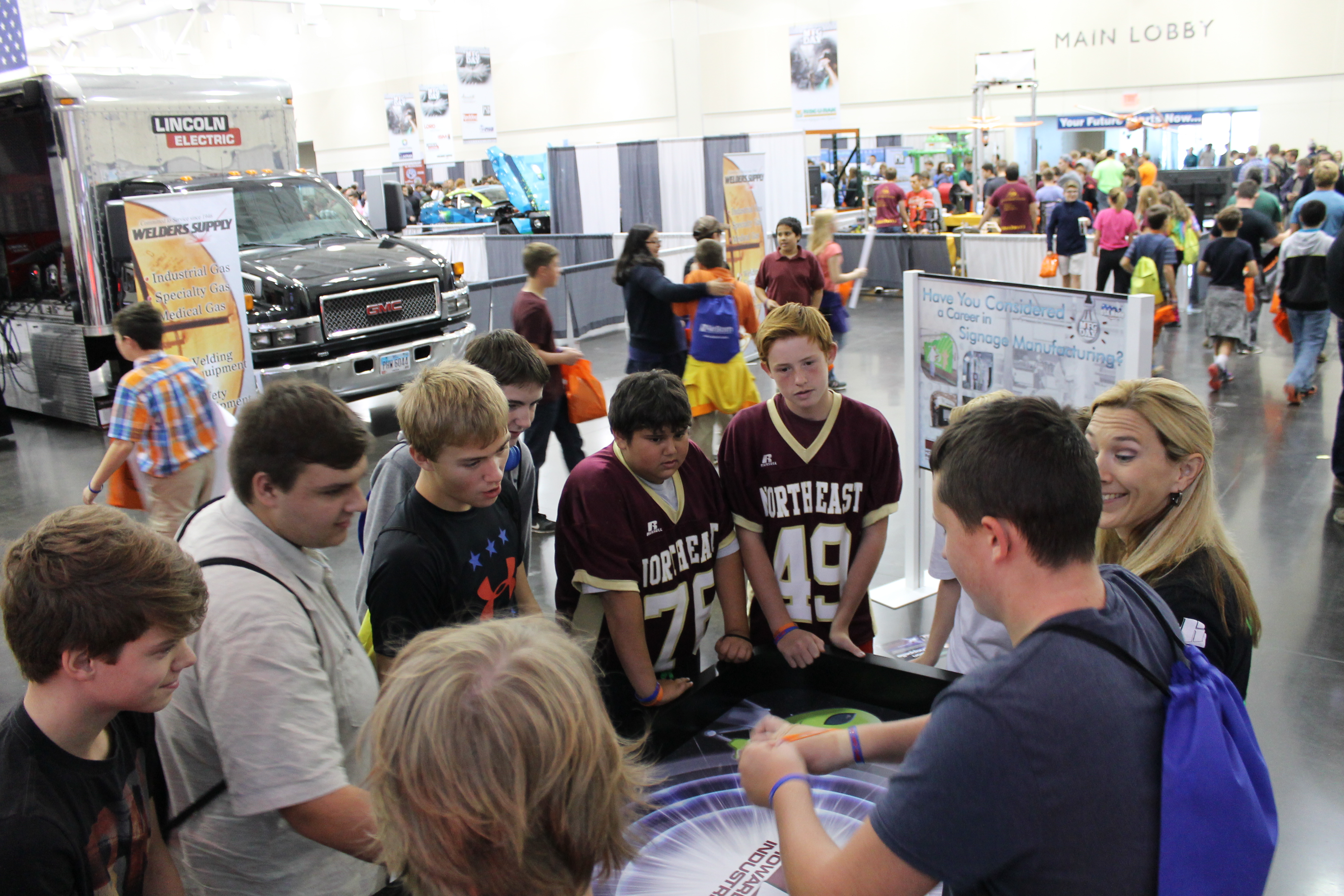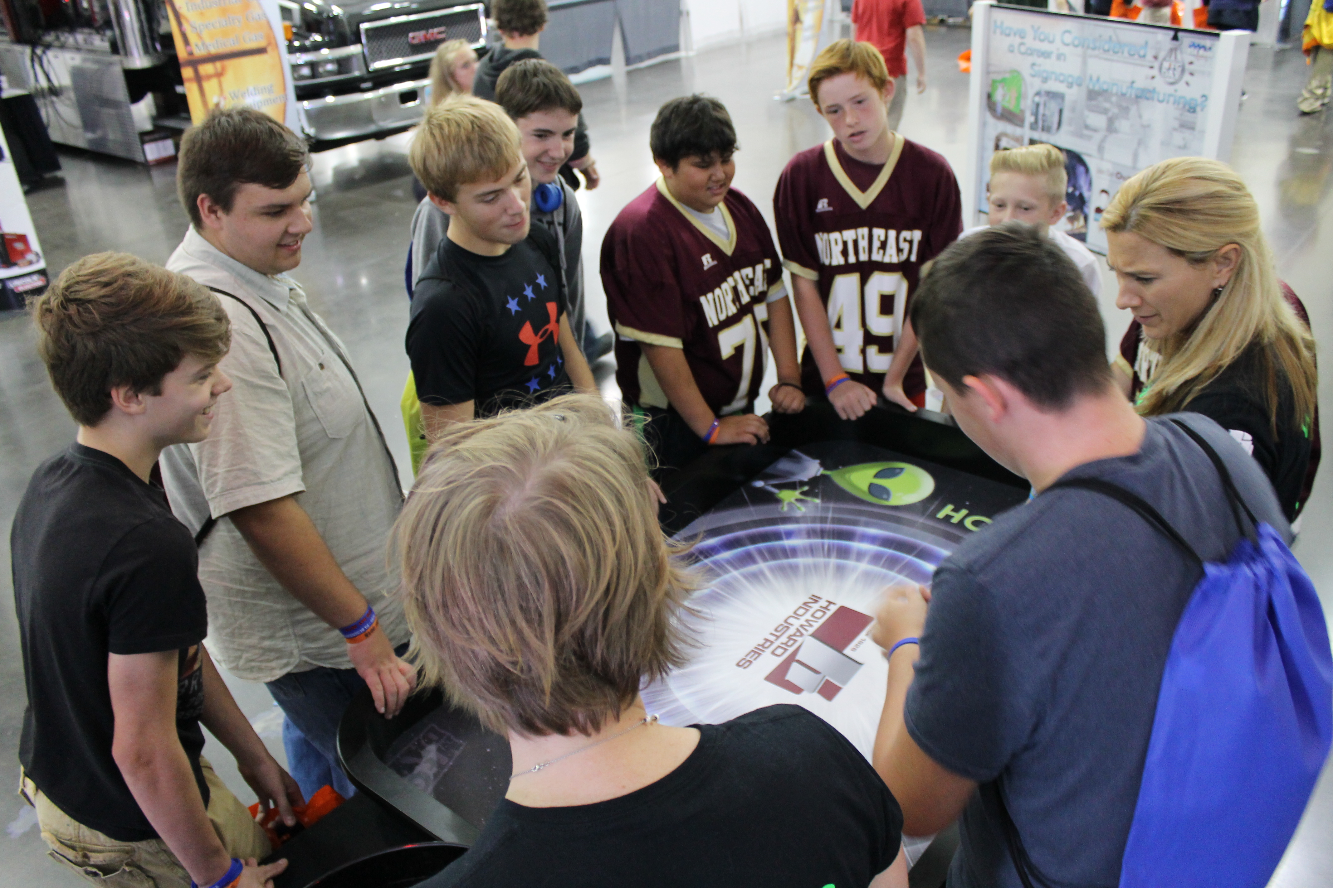 The Manufacturing and Business Association’s MFG Day Celebration welcomed over two thousand inquisitive students from the Erie area. The Howard Industries Architectural Signage booth gave students the opportunity to learn about the signage manufacturing industry and the variety of career opportunities it has to offer. The theme “How Far Will Manufacturing Take You?” was